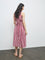Embrace bold romance with this red shirt dress by Bombay Paisley, where floral prints meet subtle striped accents. Designed with a notch-lapel collar and sleeveless cut, it balances structure with ease. The tie-up detail at the back allows for a flattering fit, while pure cotton ensures breathable, all-day comfort.