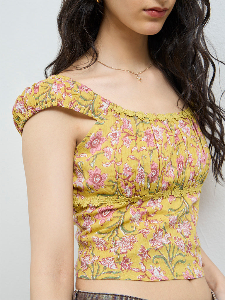 Bombay Paisley Yellow Floral Cotton Top