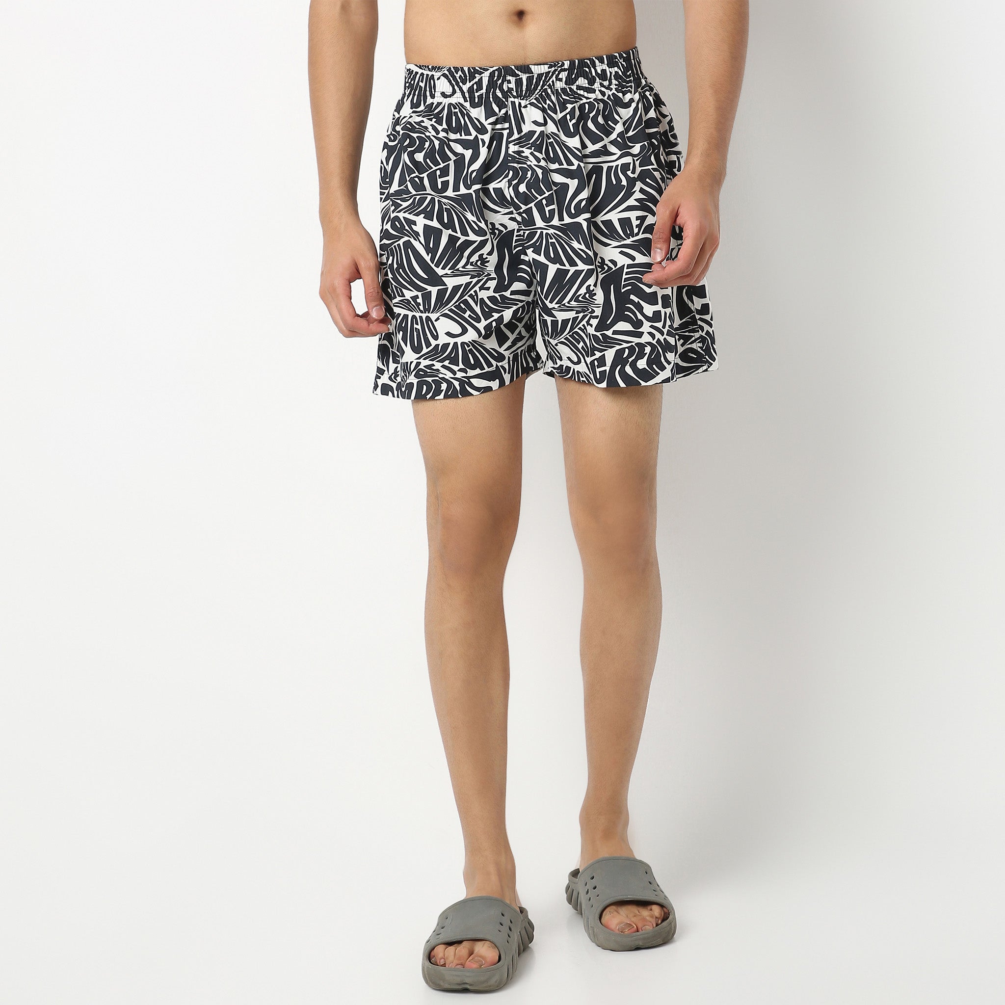 Experience the perfect blend of comfort and style with these Regular Fit Printed Above Knee Mid Rise Shorts. Crafted from a premium Cotton Viscose blend, these shorts offer a soft touch and breathable comfort, making them ideal for any casual outing. The printed pattern adds a touch of personality, ensuring you stand out in any crowd.