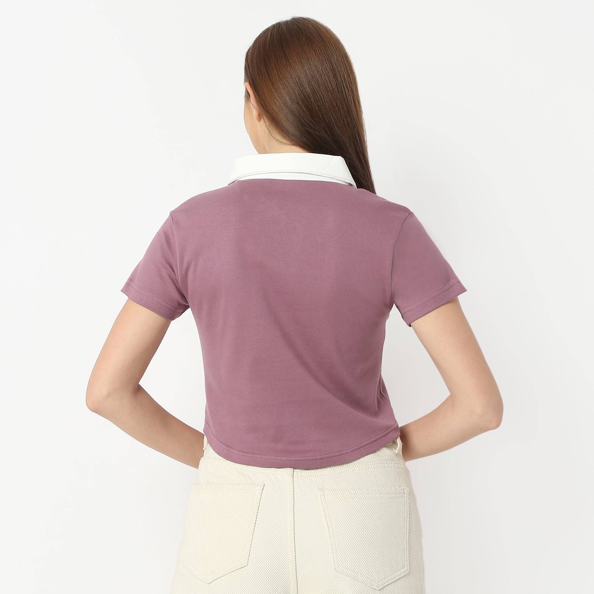Boxy Fit Printed Shirt Collar Short Sleeve Crop T-Shirt