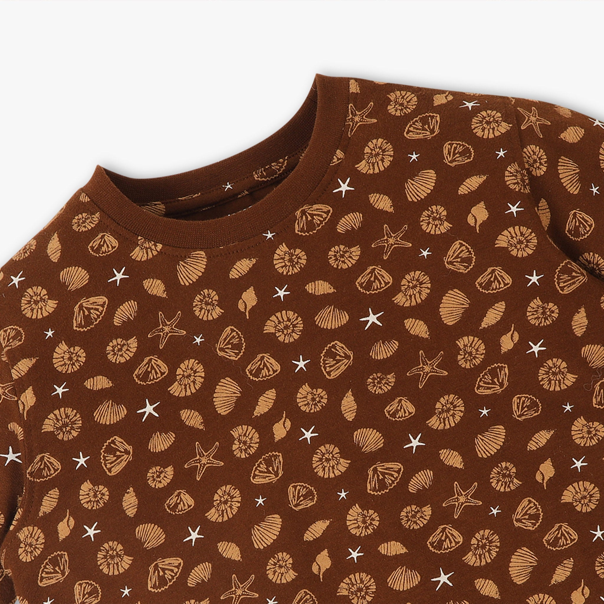 Experience the ultimate in comfort and style with our Boys Regular Fit All Over Print Crew Neck Full Sleeve T-Shirt with Trackpant Sleepwear Set. Crafted from 100% cotton, this set promises a soft touch against the skin, ensuring a restful night's sleep or a cozy day at home. The playful all-over print adds a touch of fun, making it a favorite for boys who love to express their personality even in sleepwear.