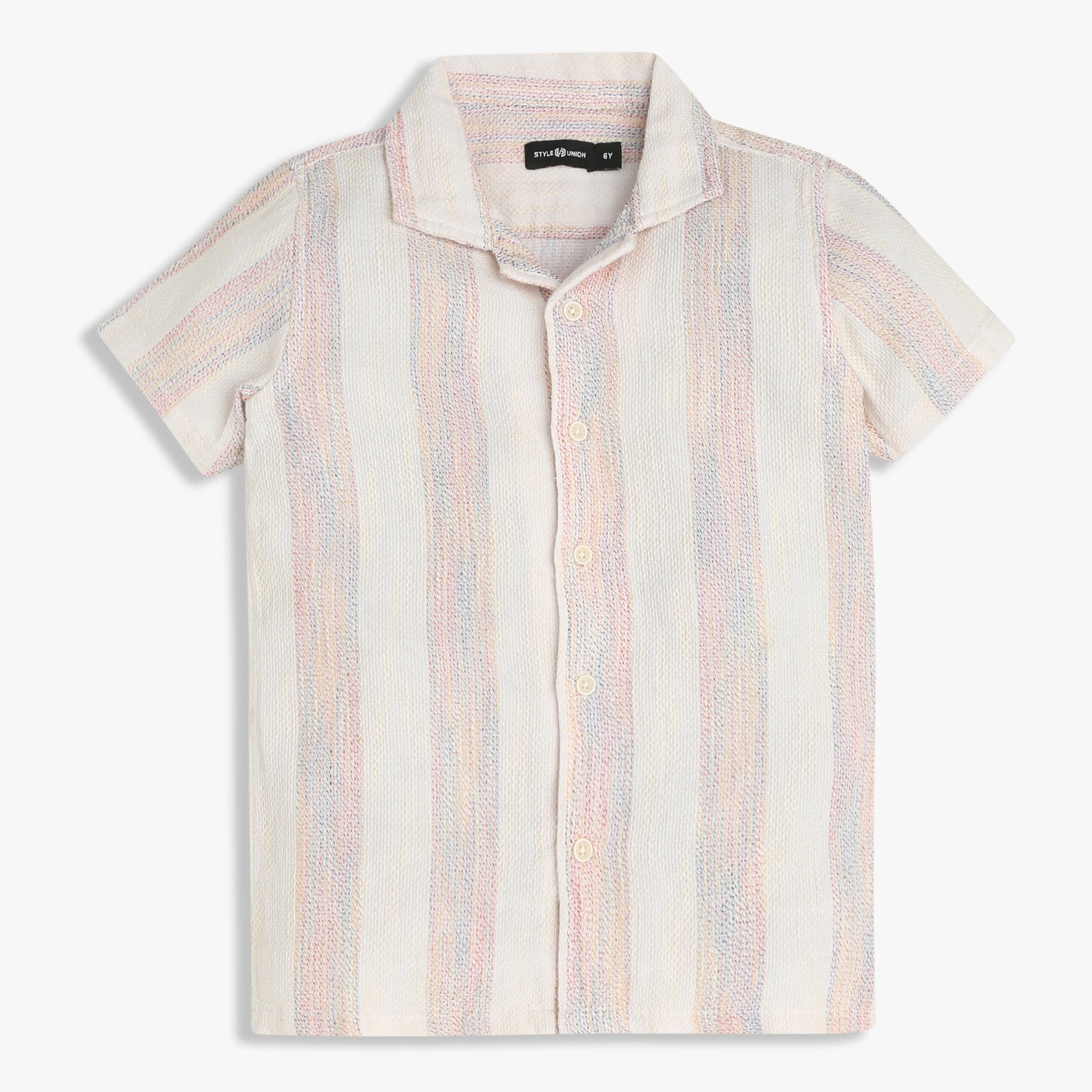 Experience the perfect blend of comfort and style with our Boys Cuban Half Sleeve Shirt. Crafted from 100% cotton, this shirt offers a soft touch against the skin, ensuring all-day comfort for your little one. The classic striped pattern adds a timeless charm, making it a versatile addition to any wardrobe.