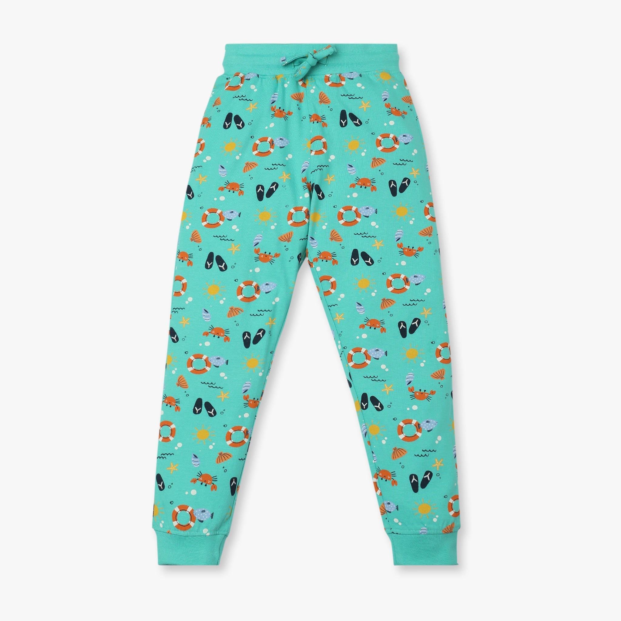These printed pattern t-shirt with pyjama sleepwear set has crew neck and full sleeve. Made from cotton, your kid's feel comfortable wearing the product.