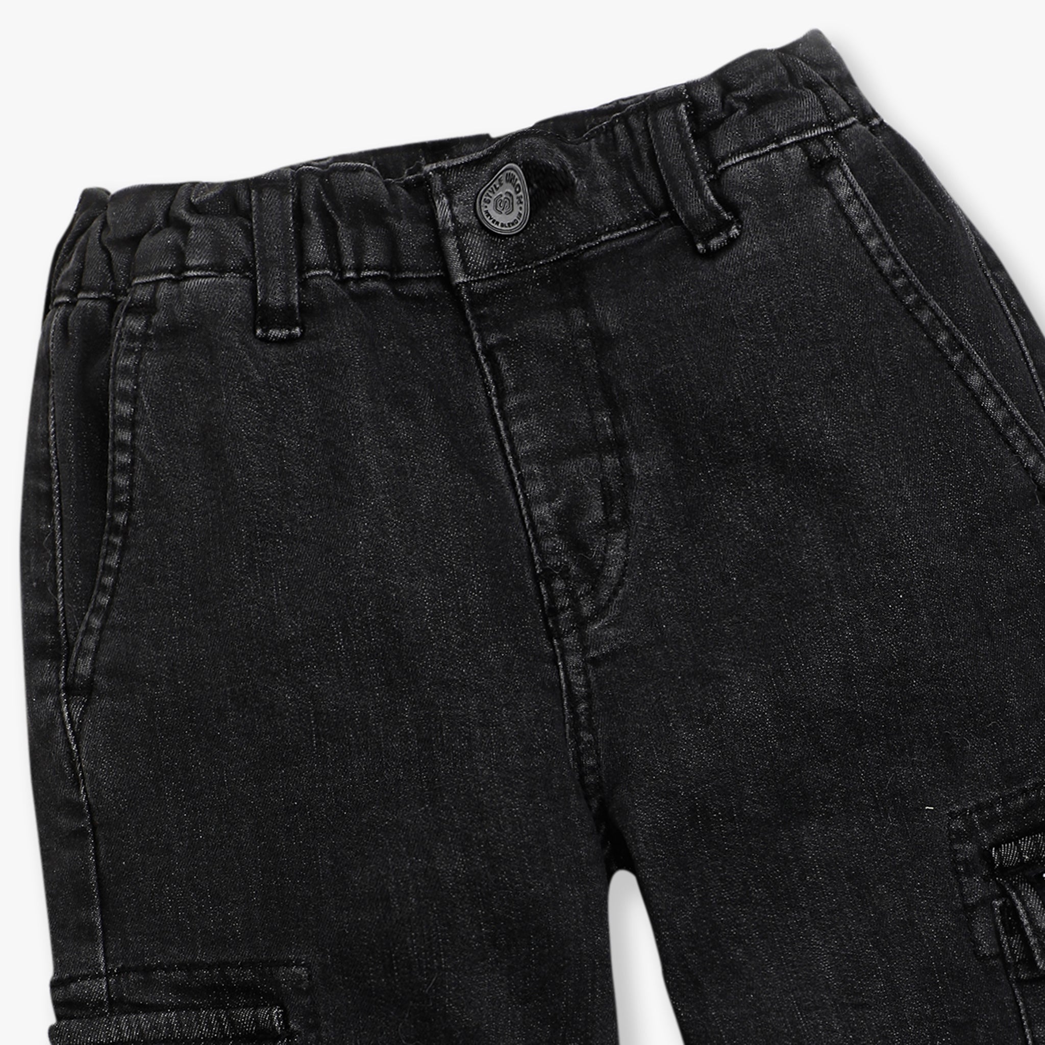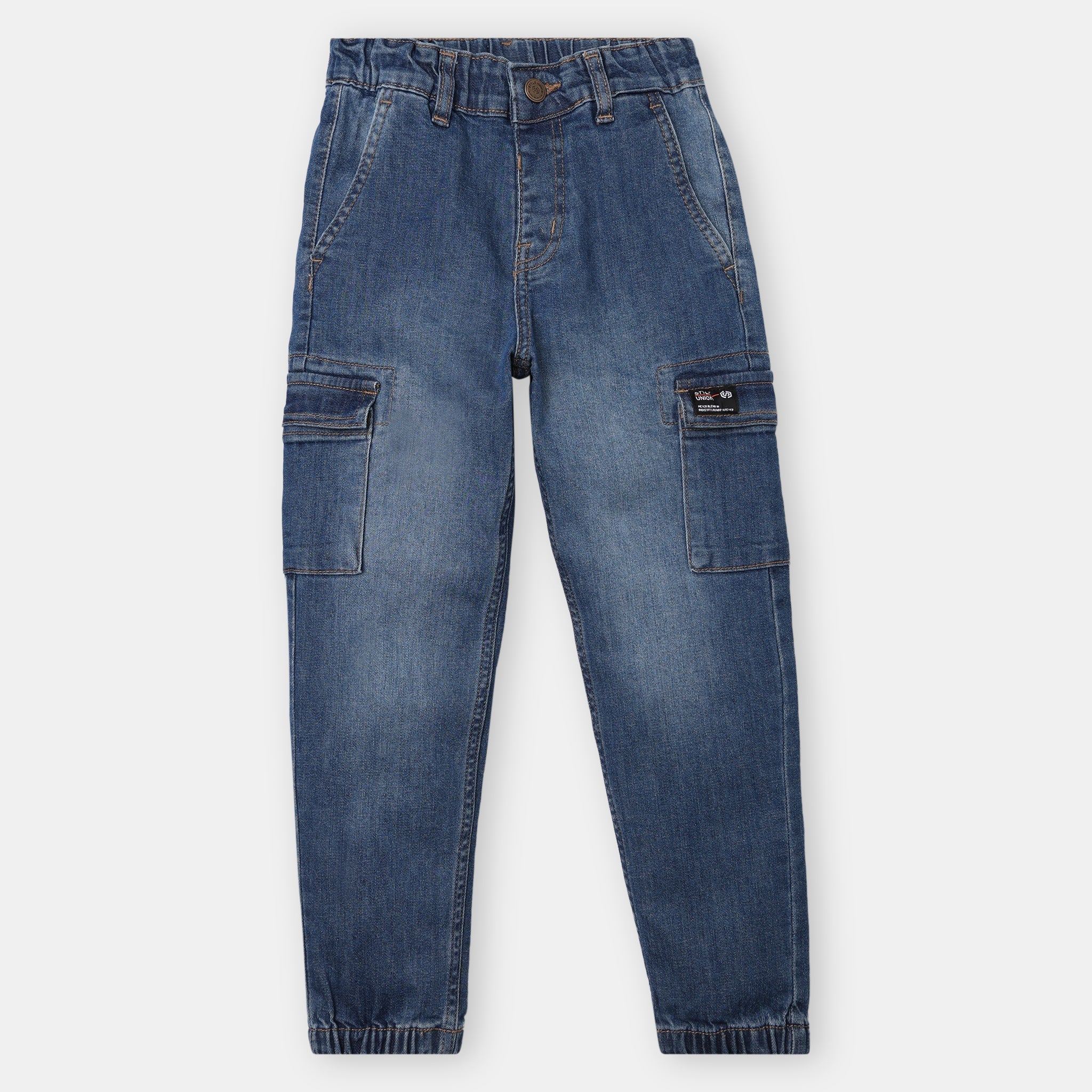 These denim jogger theme, cut and sew pattern regular fit joggers has mid rise waist. Made from cotton, your kid's feel comfortable wearing the product.