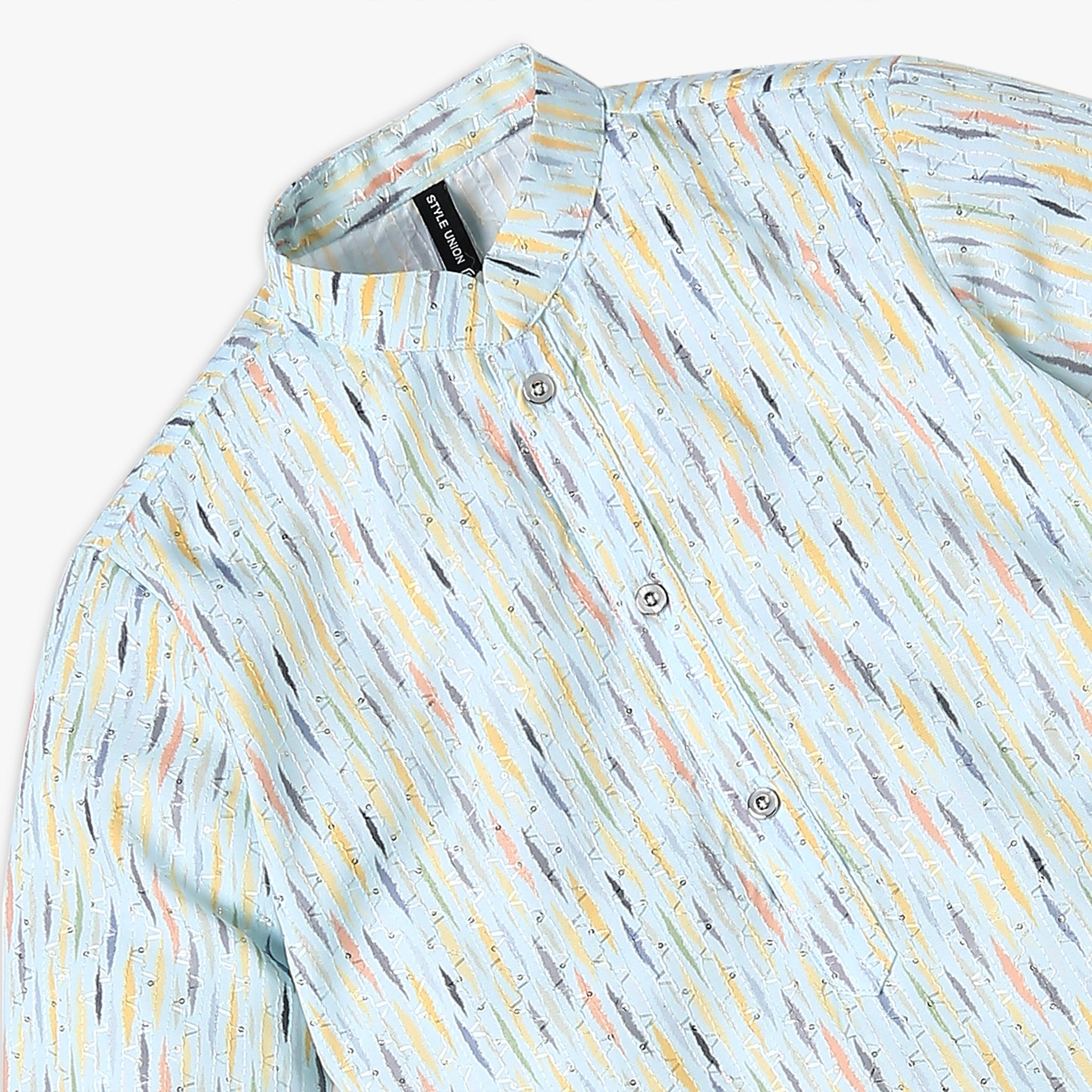 This kurta sets has a mandarin collar and full sleeve. Made from polyester, your kid's feel comfortable wearing a product.