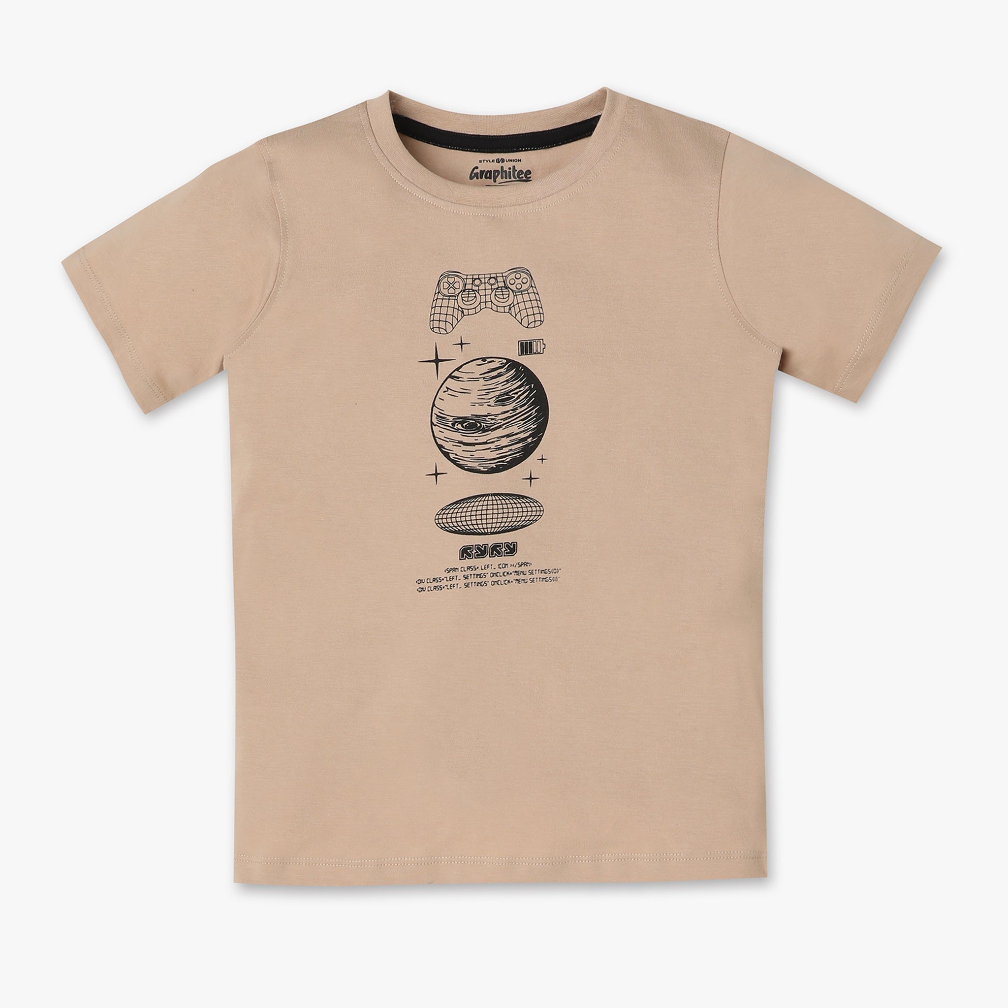 These graphic pattern t-shirt has crew neck and half sleeve. Made from cotton, your kid's feel comfortable wearing the product.