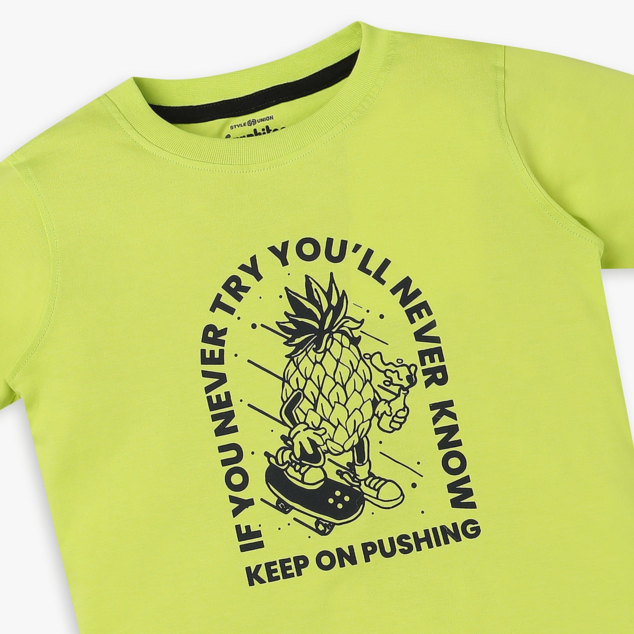 These printed pattern t-shirt has crew neck and half sleeve. Made from cotton, your kid's feel comfortable wearing the product.