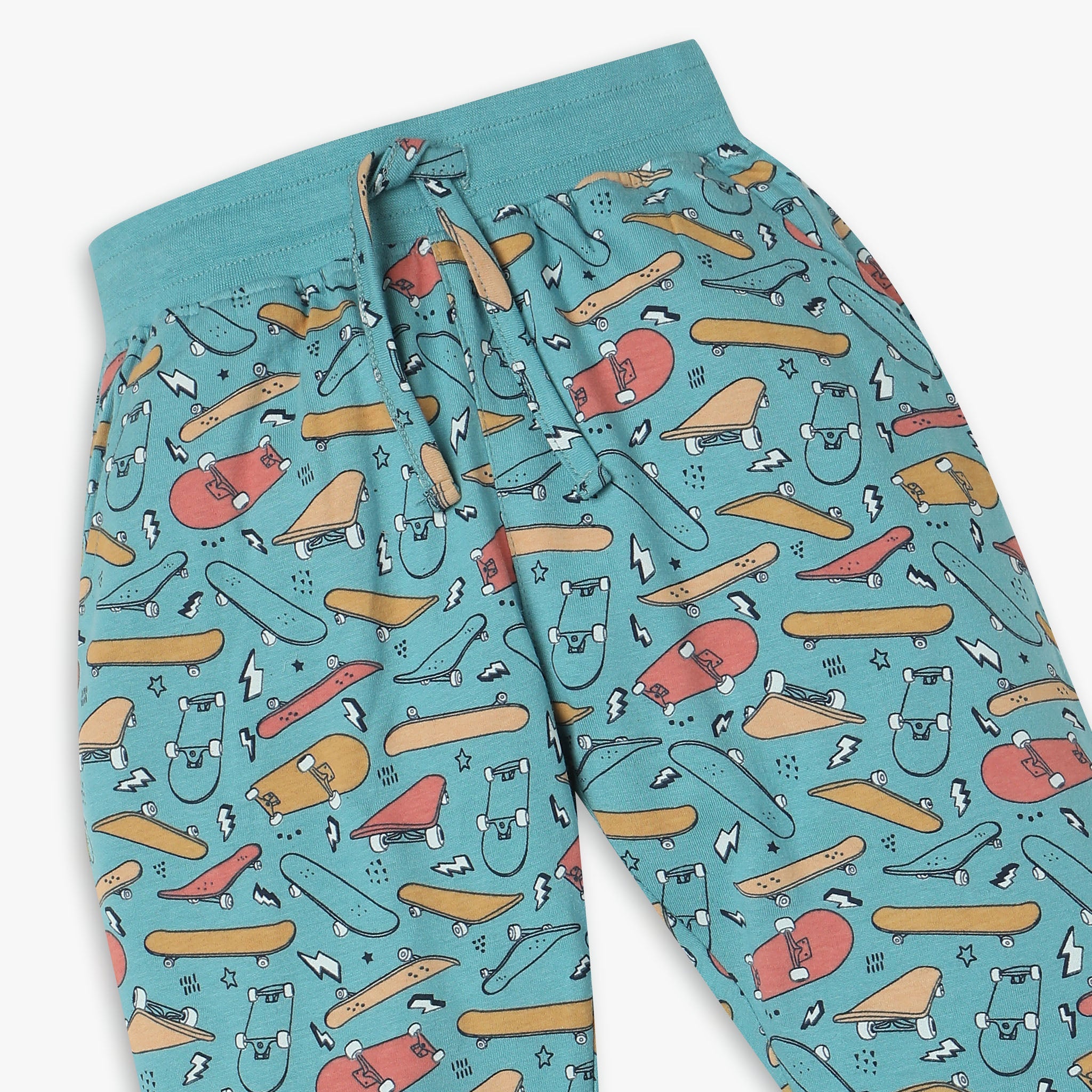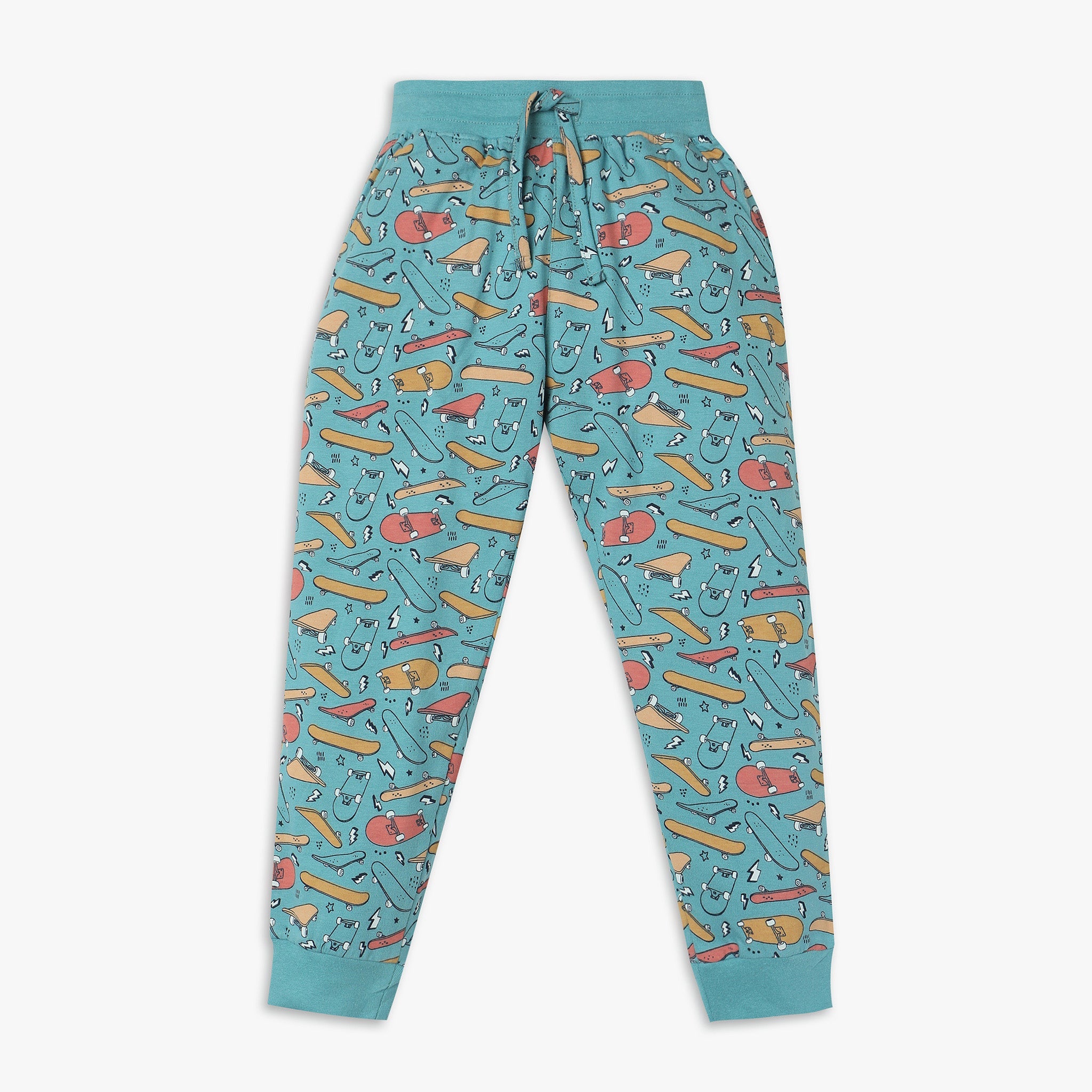 These printed pattern t-shirt with trackpant sleepwear set has crew neck and full sleeve. Made from cotton, your kid's feel comfortable wearing the product.