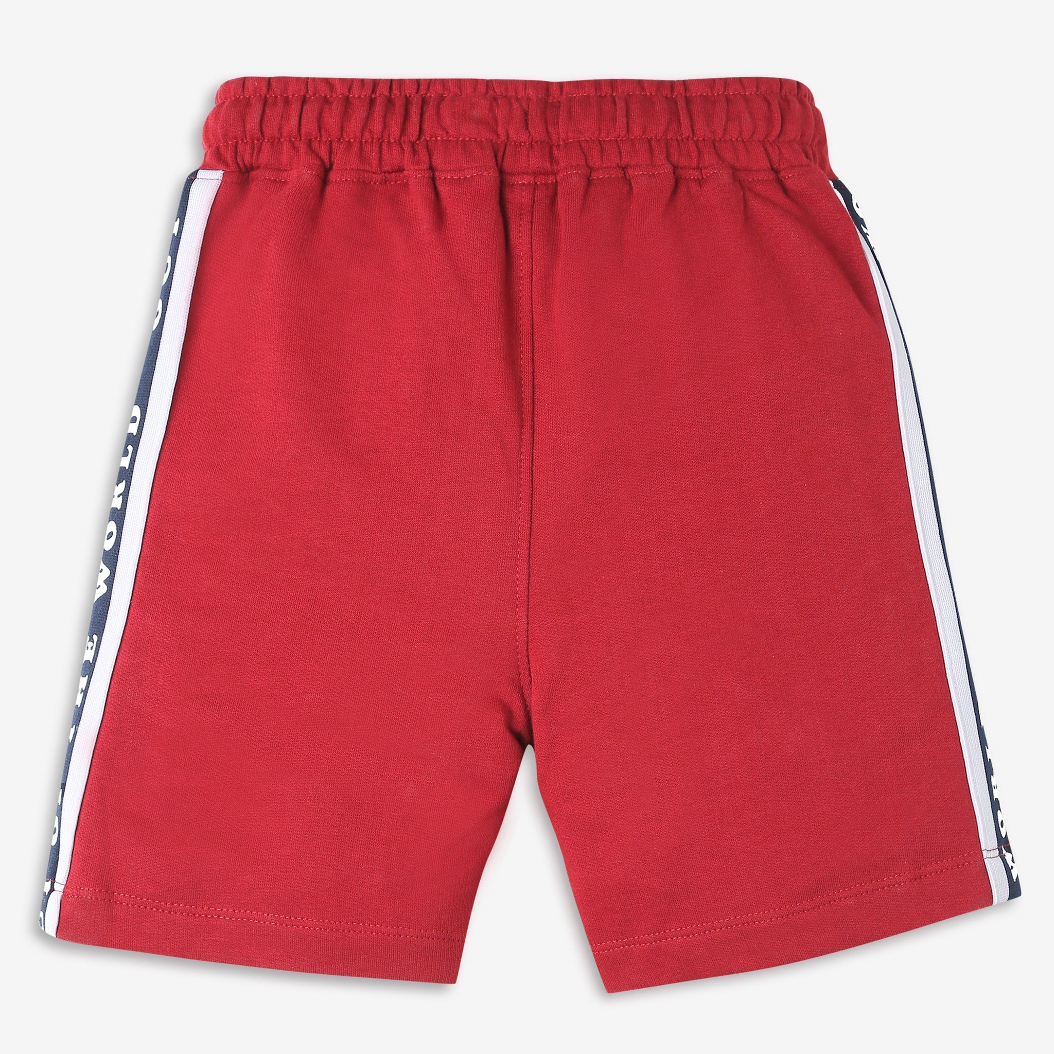 These slogan shorts theme, solid pattern regular fit shorts has mid rise waist. Made from cotton, your kid's feel comfortable wearing the product.