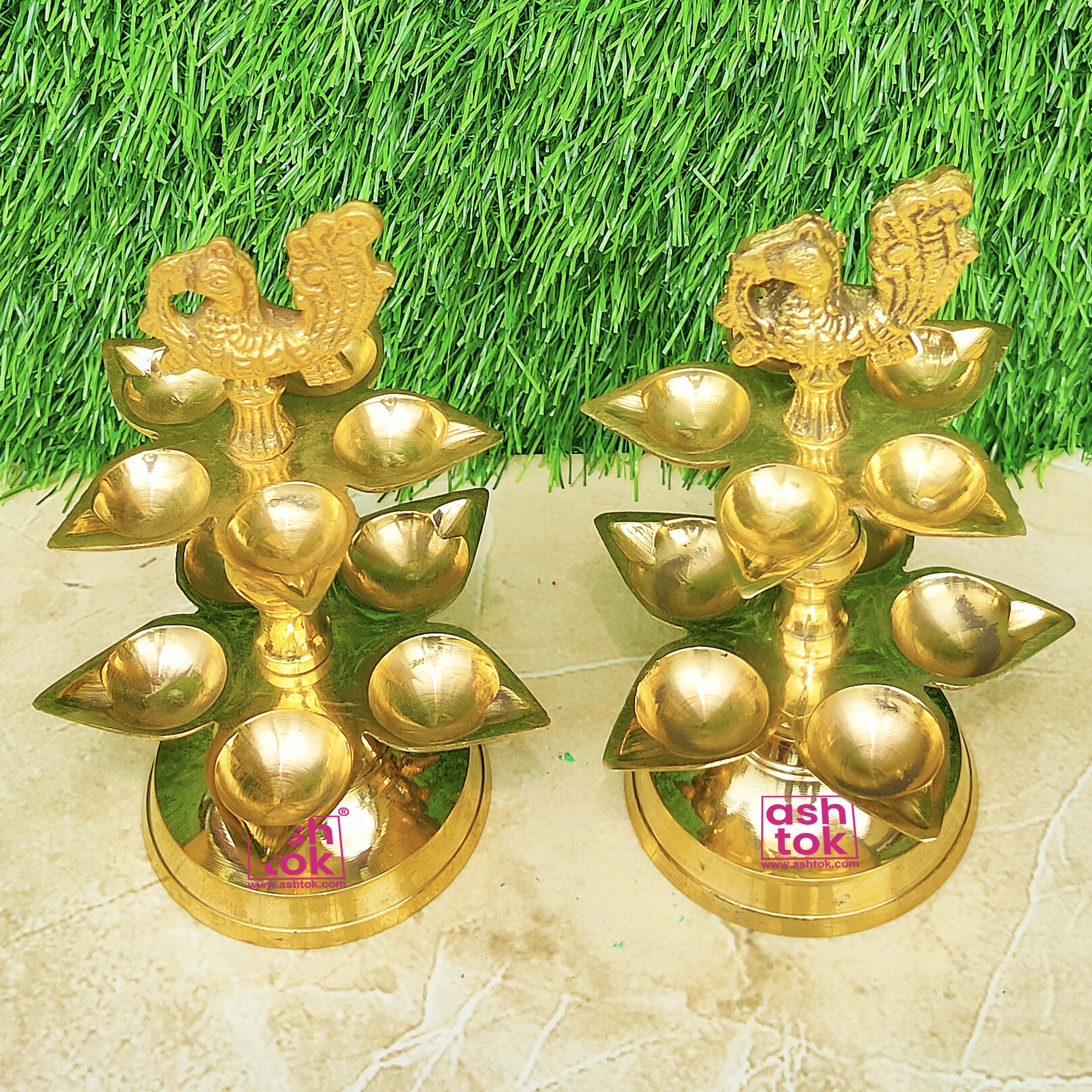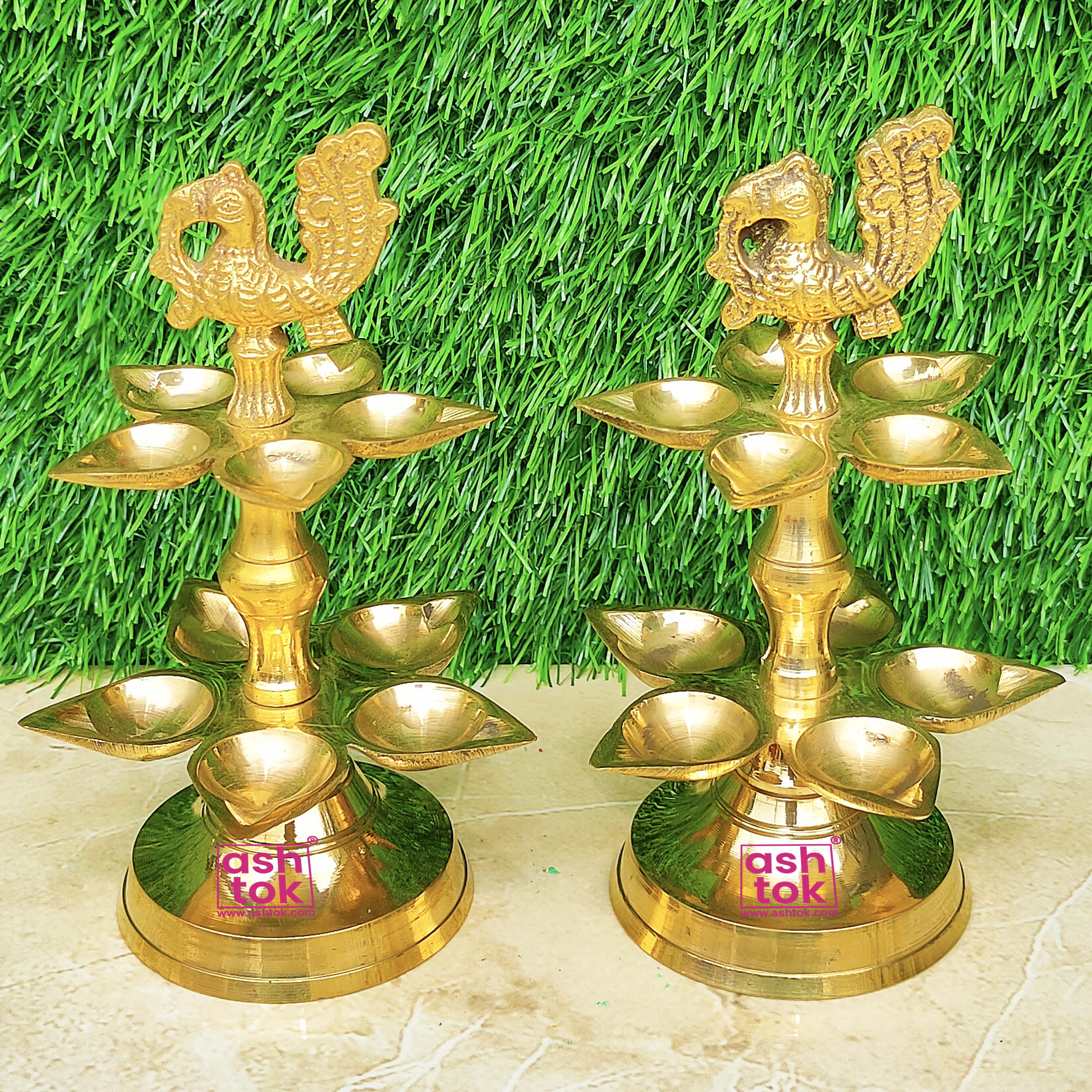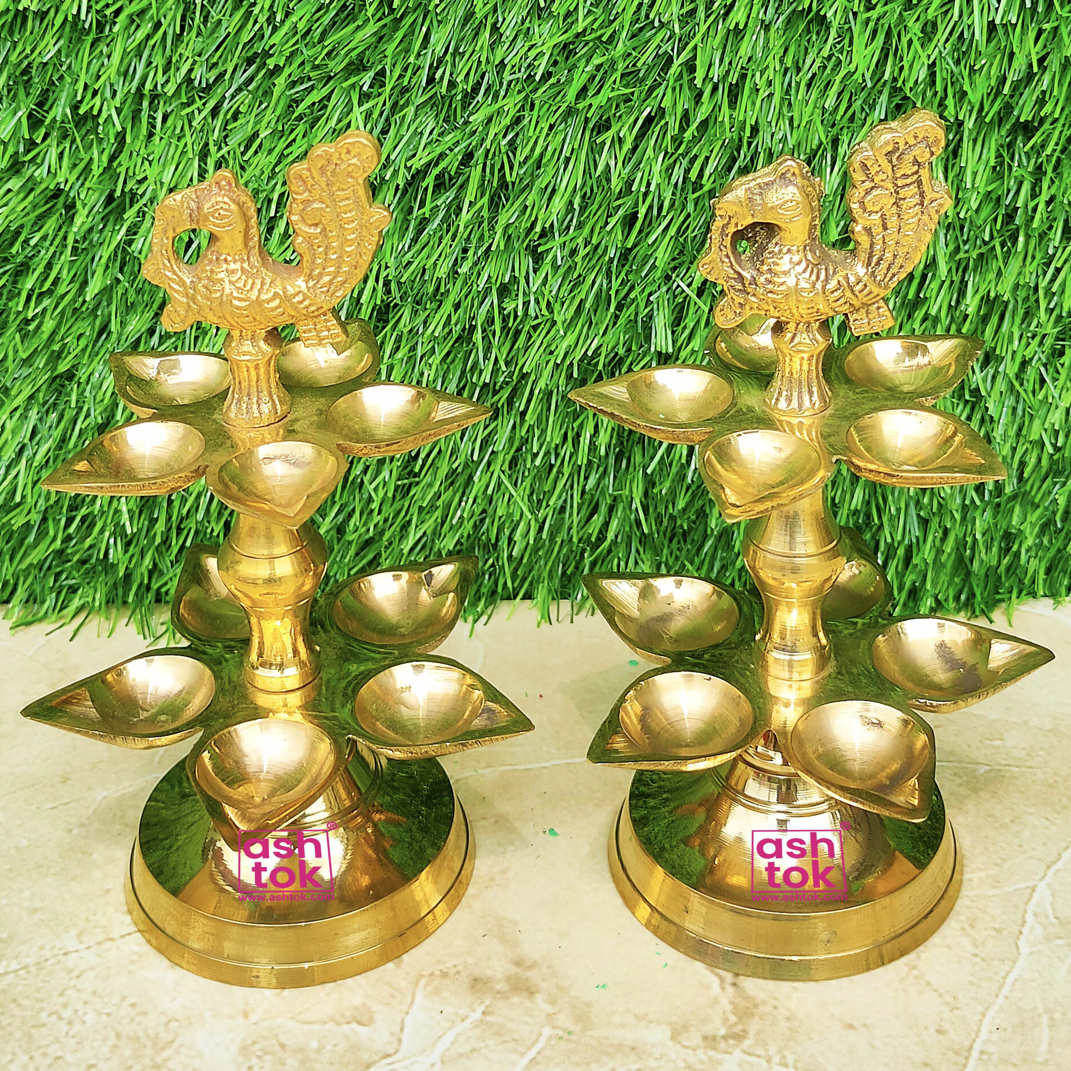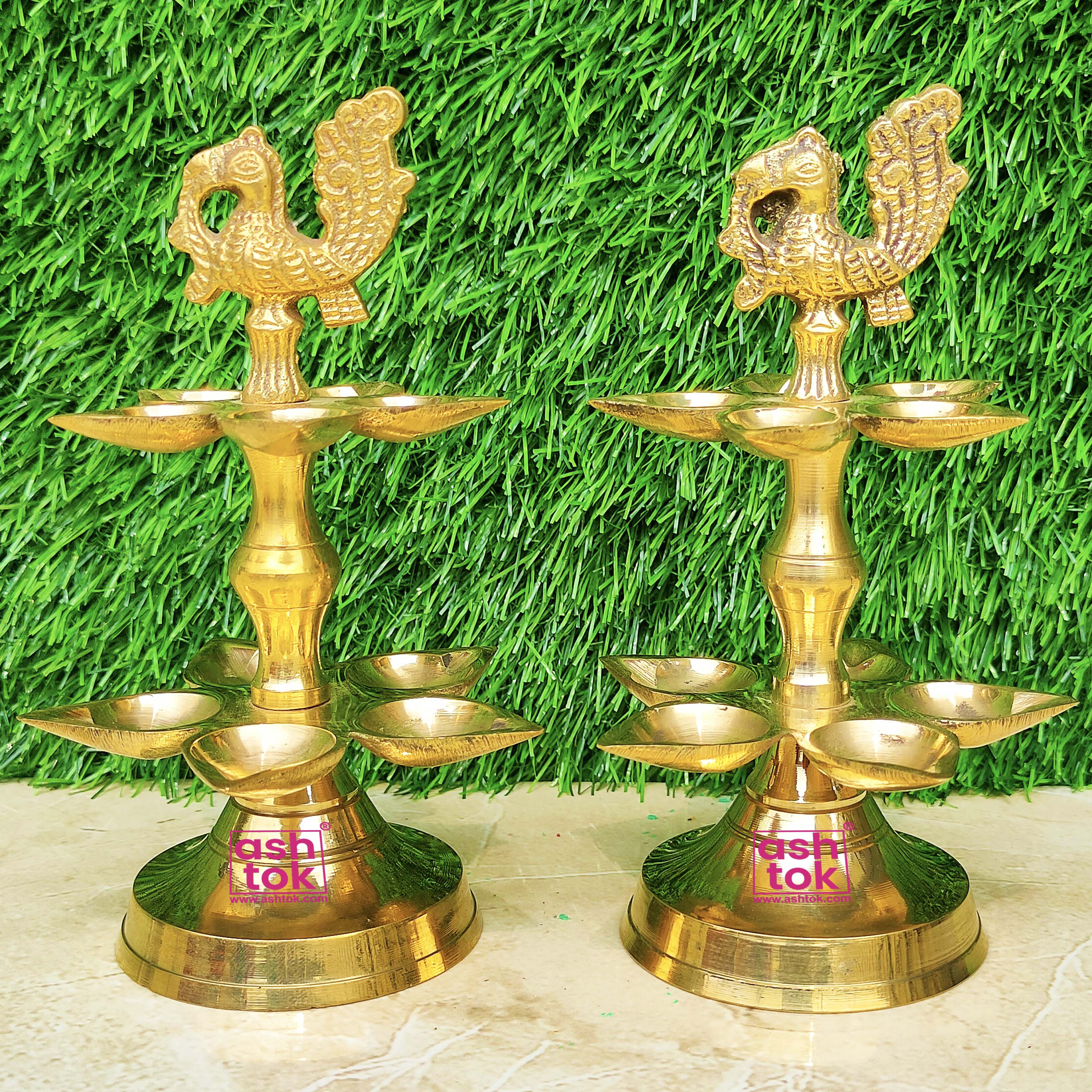 Best Quality Pure Brass Panchamahal 2 Step Peacock diya Set. Designed by Ashtok. We provide the most affordable prices and free shipping throughout India.