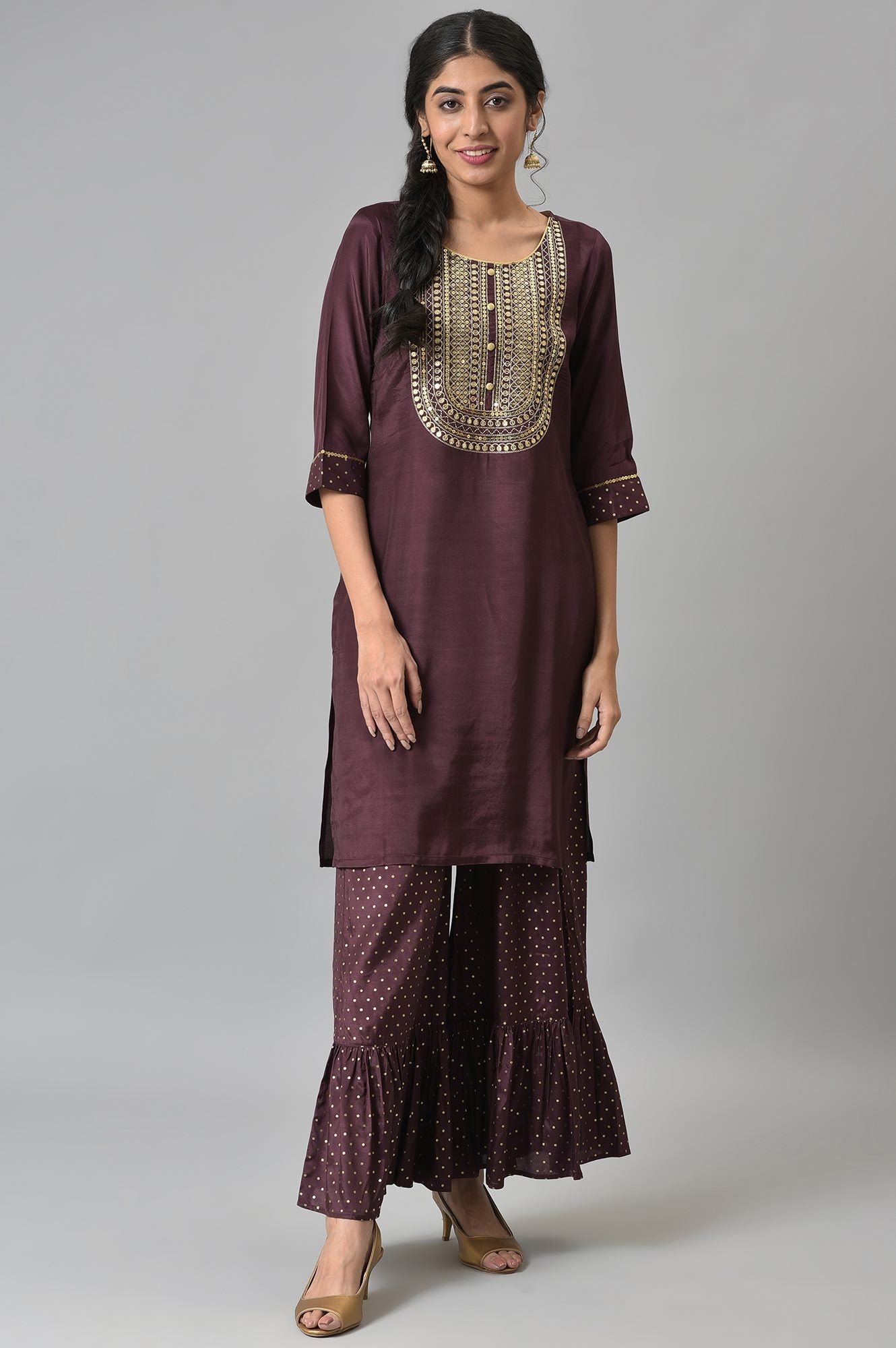 Brown Shantung Liva Kurta With Gathered Sharara