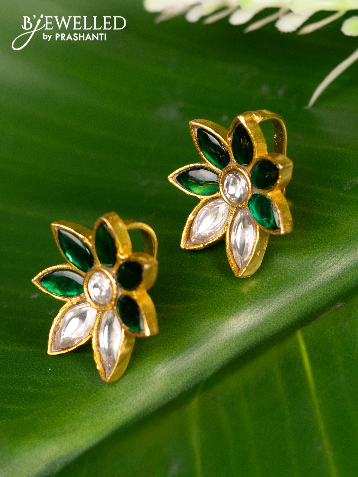 Bugadi earrings floral design with green jadau kundan stones