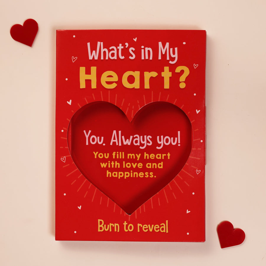 Content on the card: What's in my heart? Burn to reveal.