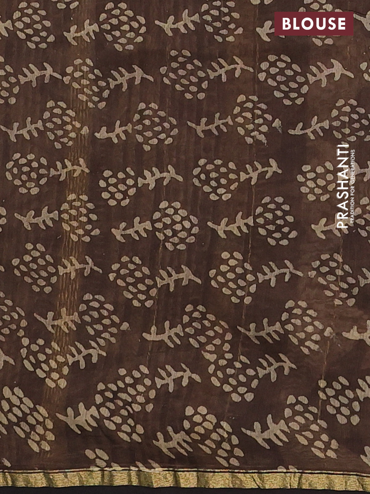 Chanderi bagru saree dark brown with allover prints and small zari woven border
