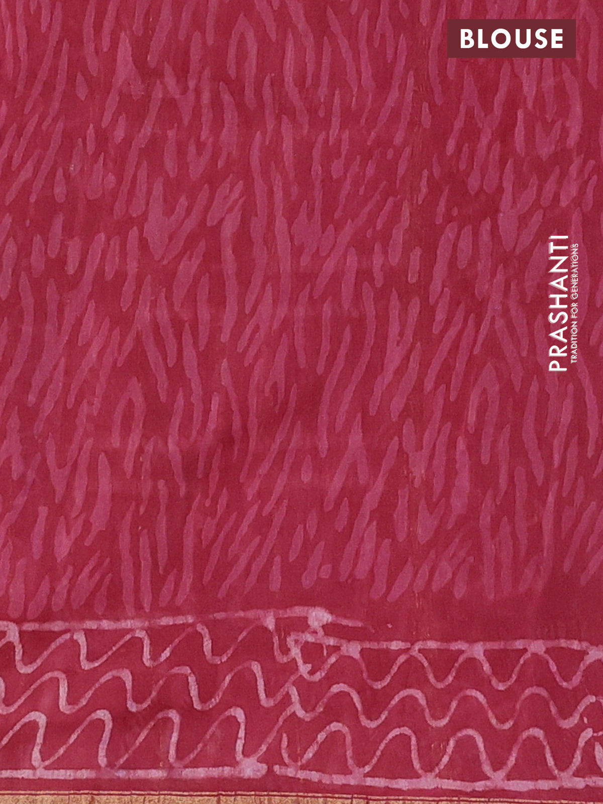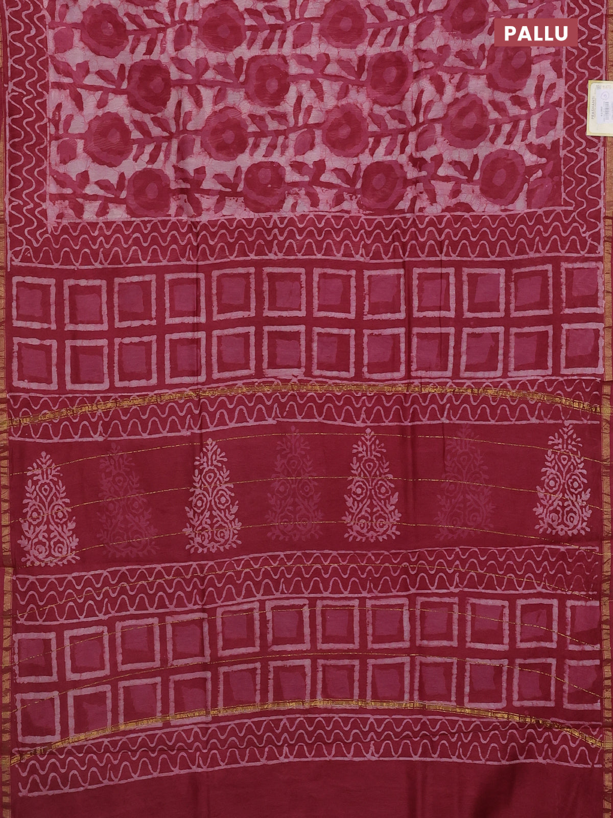 Chanderi bagru saree off white and maroon shade with allover batik prints and small zari woven border