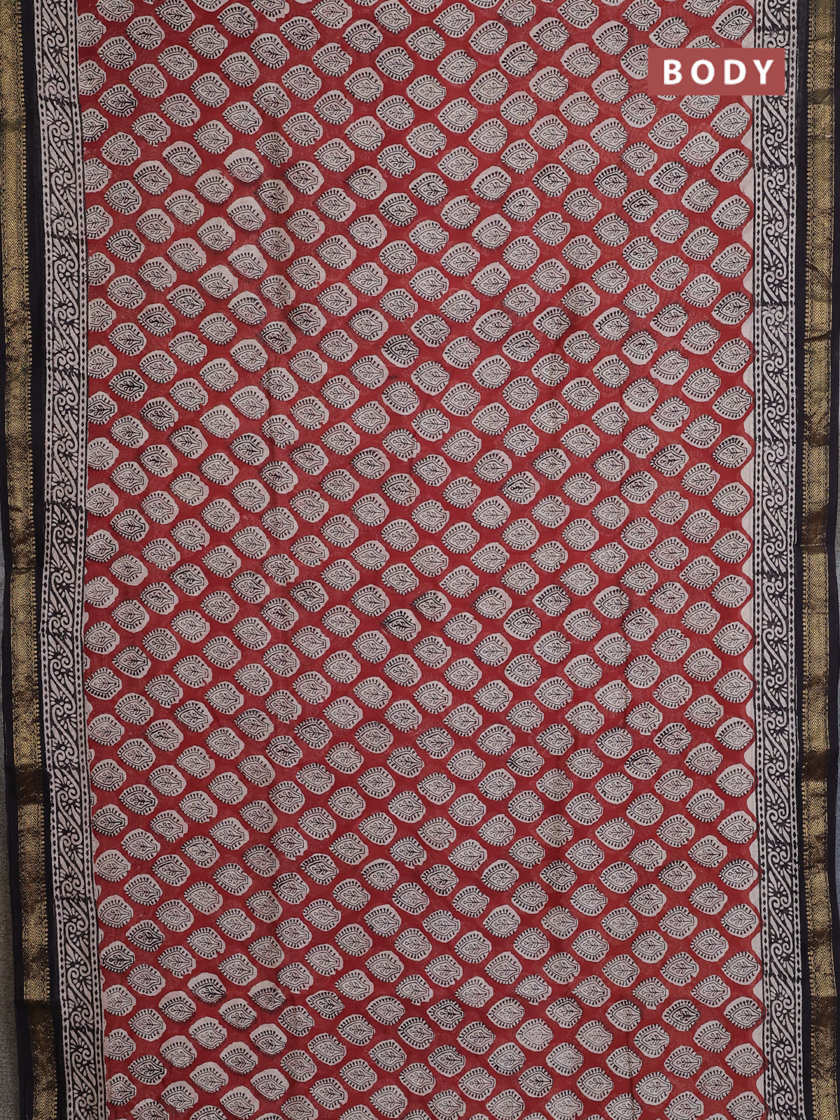 Chanderi bagru saree rust shade and black with allover butta prints and maheshwari border