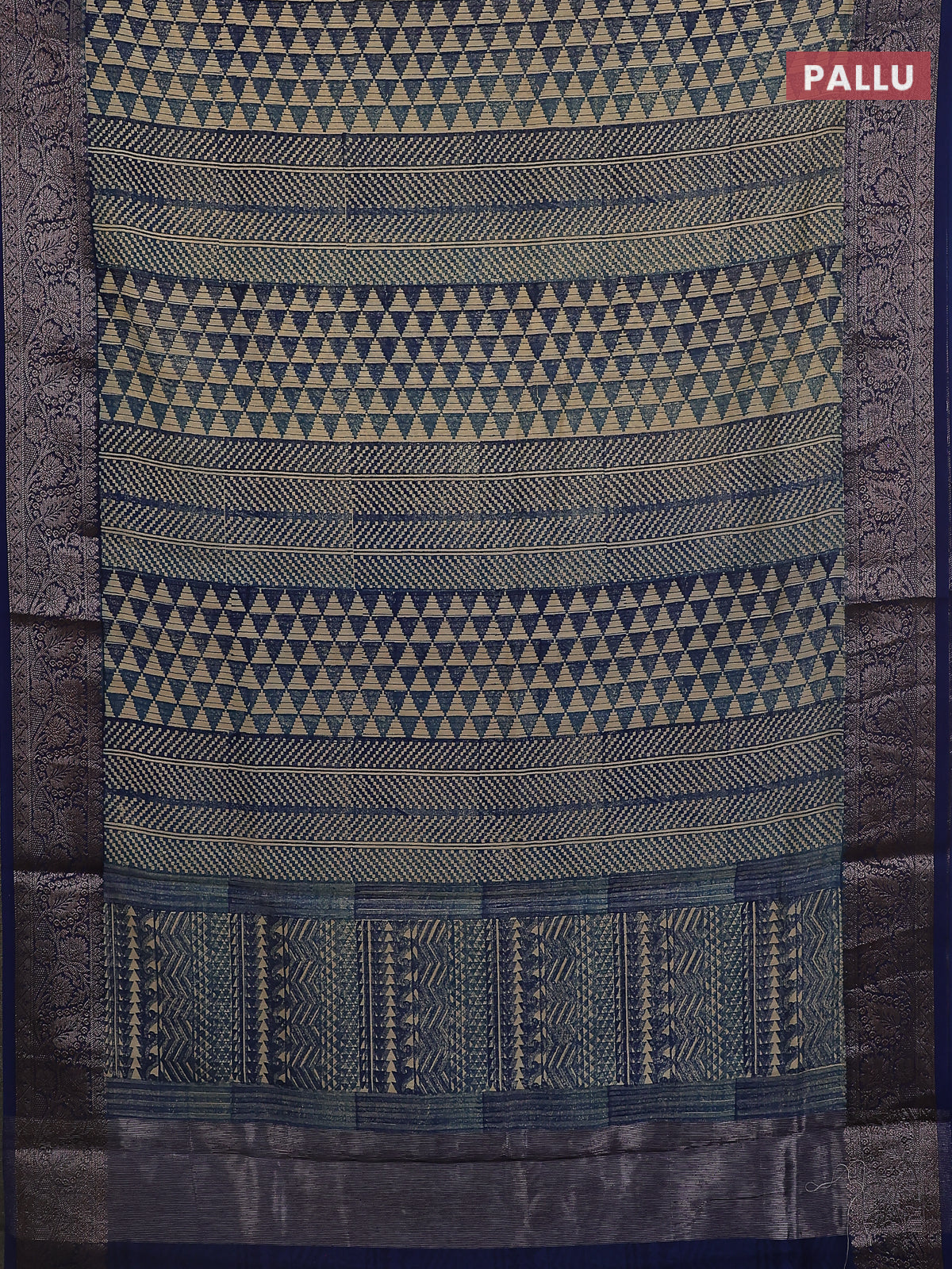 Chanderi silk cotton saree blue with allover prints and banarasi style border
