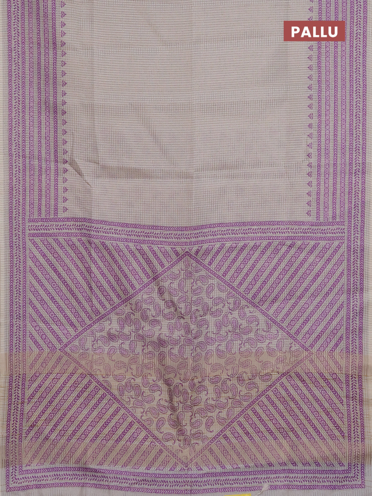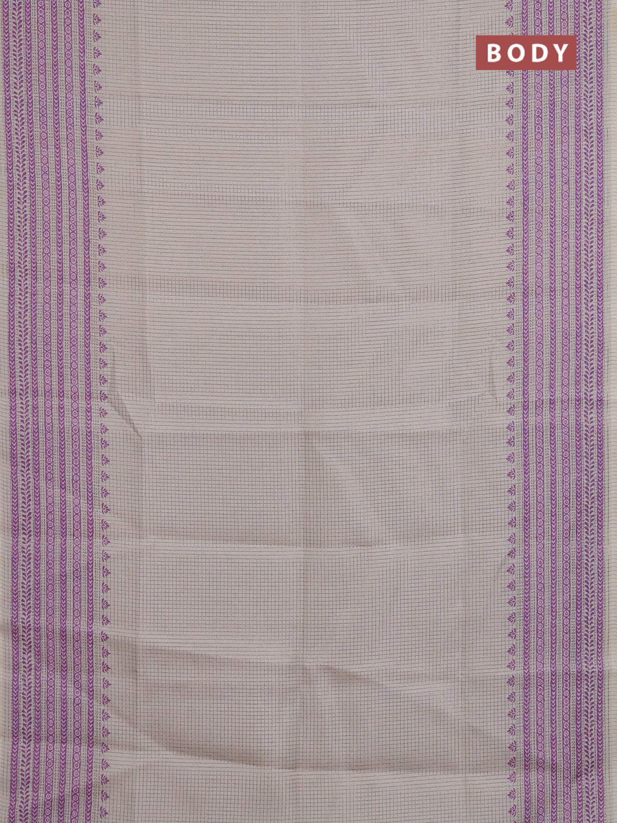 Chappa saree beige and purple with allover small zari checked pattern and printed border