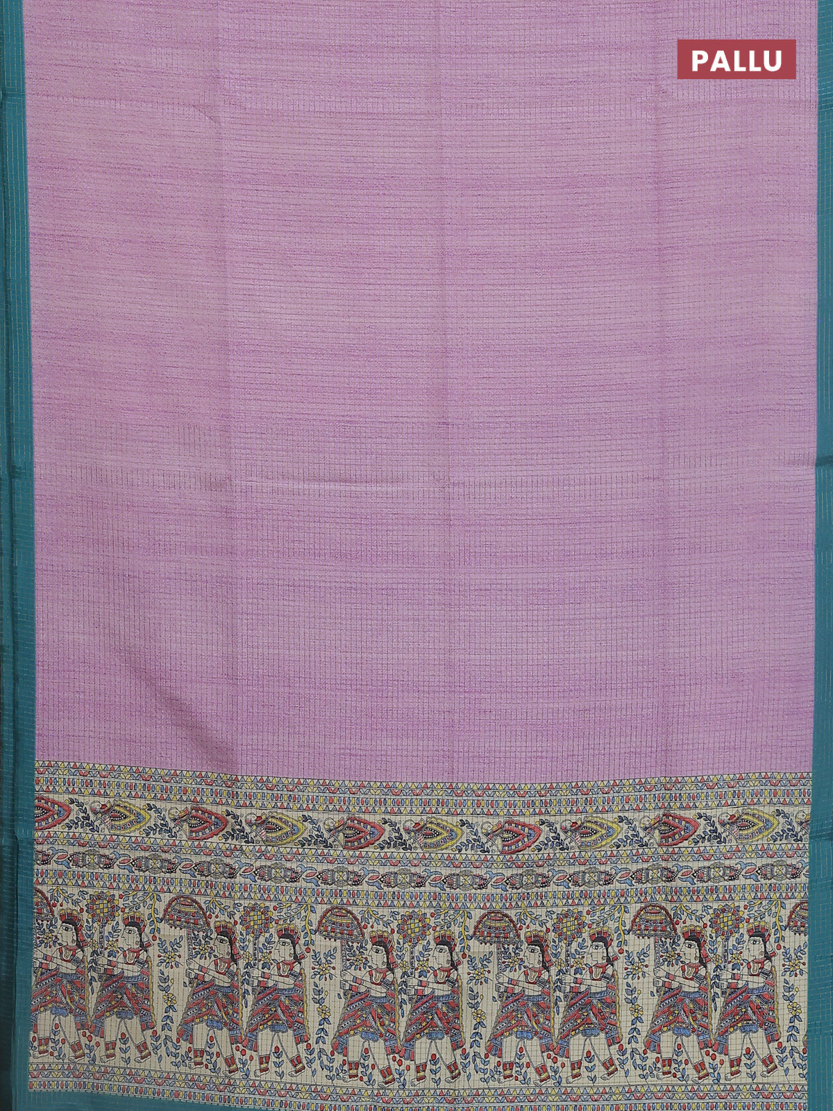 Chappa saree lavender and teal blue with allover zari checked pattern and madhubani printed pallu