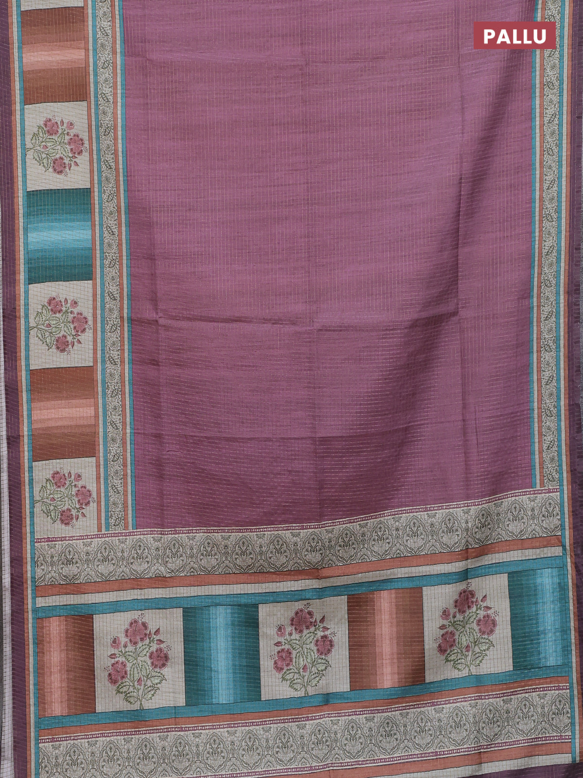 Chappa saree mauve pink with allover zari checked pattern and printed pallu