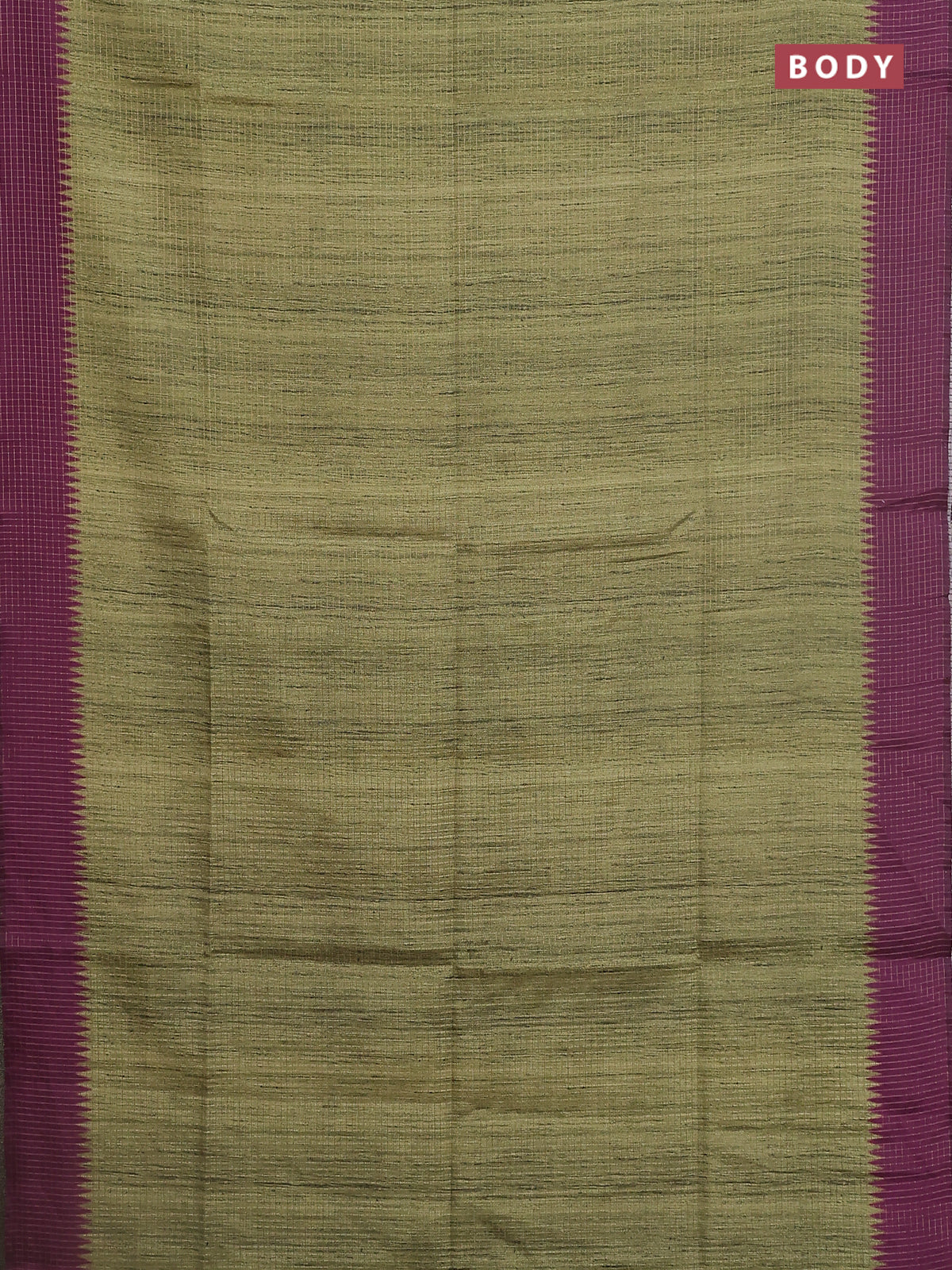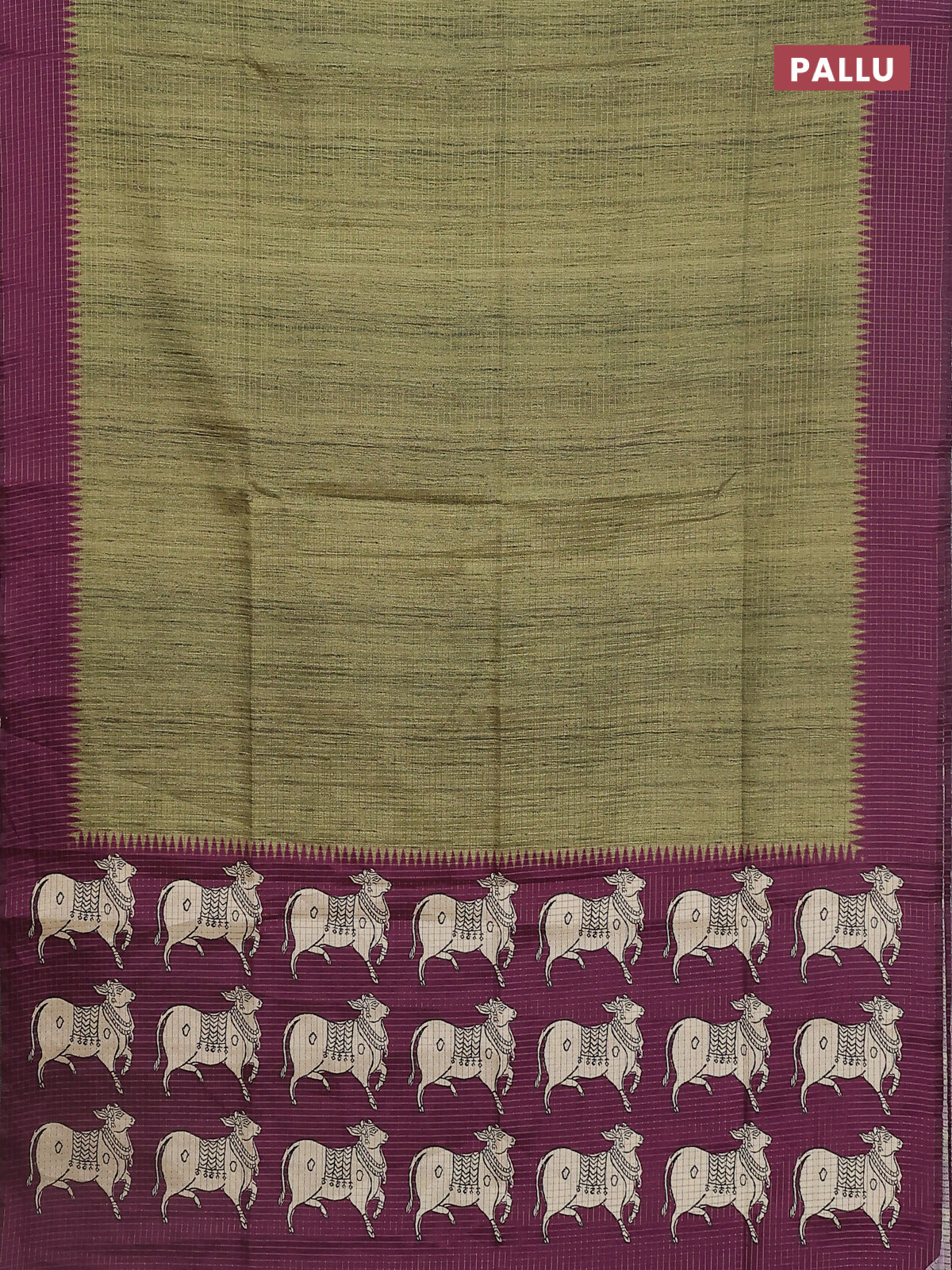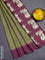 Chappa saree mehendi green and purple with allover zari checked pattern and printed pallu