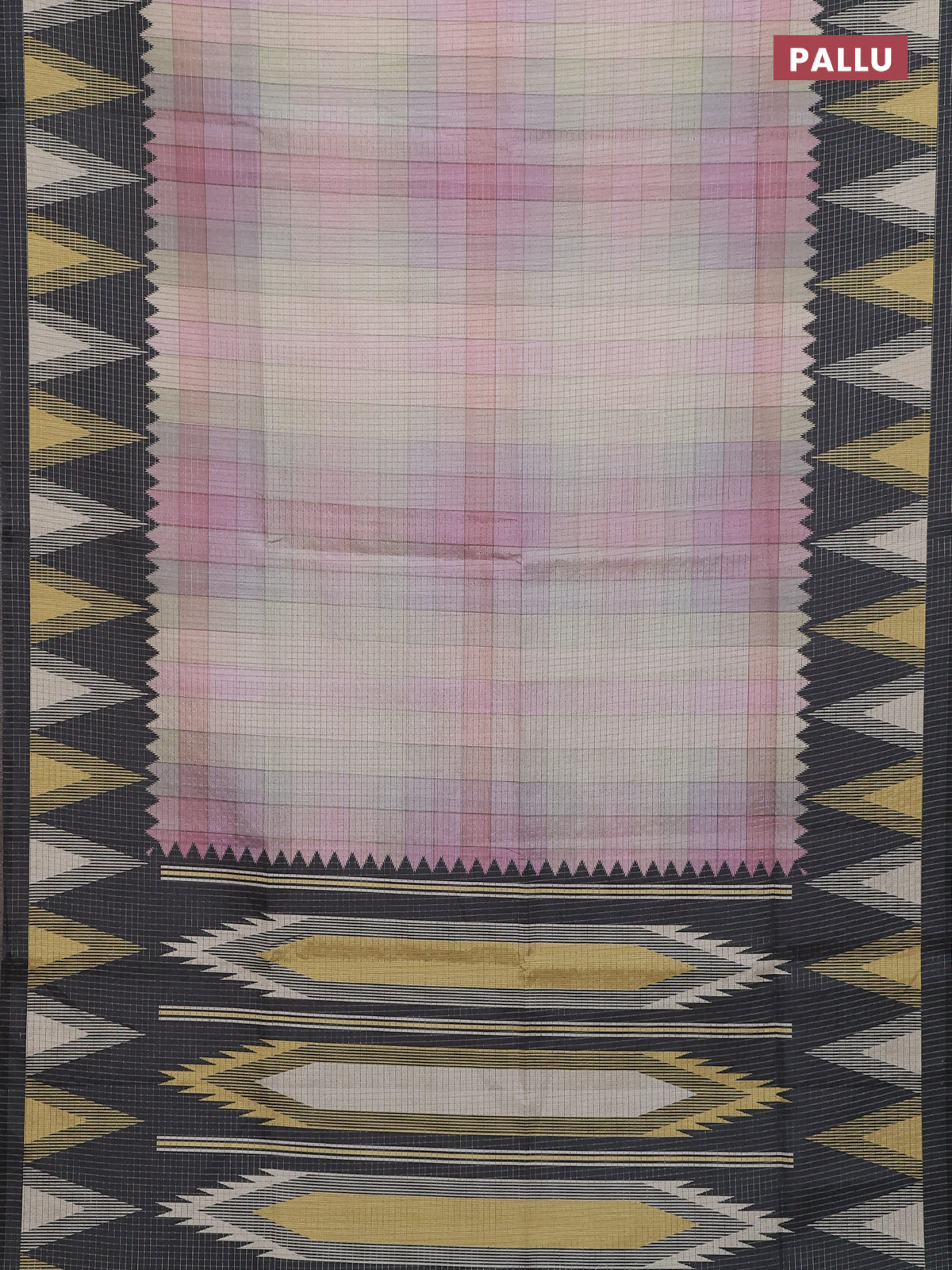 Chappa saree pastel peach pink and grey with allover zari checked pattern and temple design border
