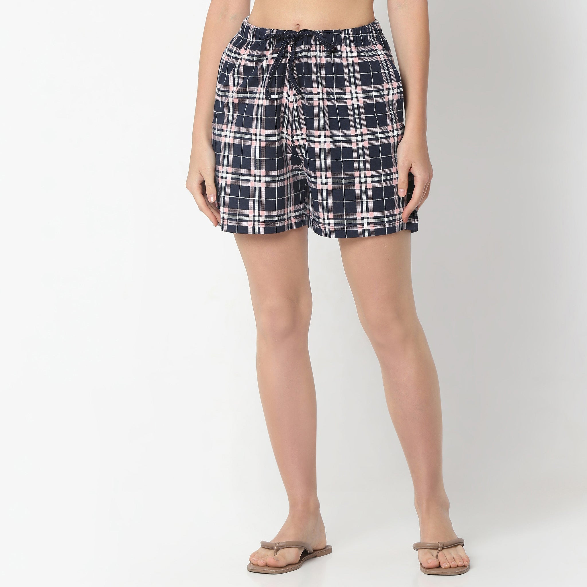 Experience the perfect blend of comfort and style with our Checkered Above Knee Mid Rise Shorts. Crafted from 100% cotton, these shorts offer a soft touch against your skin, ensuring all-day comfort. The checkered pattern adds a timeless appeal, making these shorts a versatile addition to your wardrobe. Whether you're heading out for a casual day or lounging at home, these shorts are your go-to choice for effortless style.