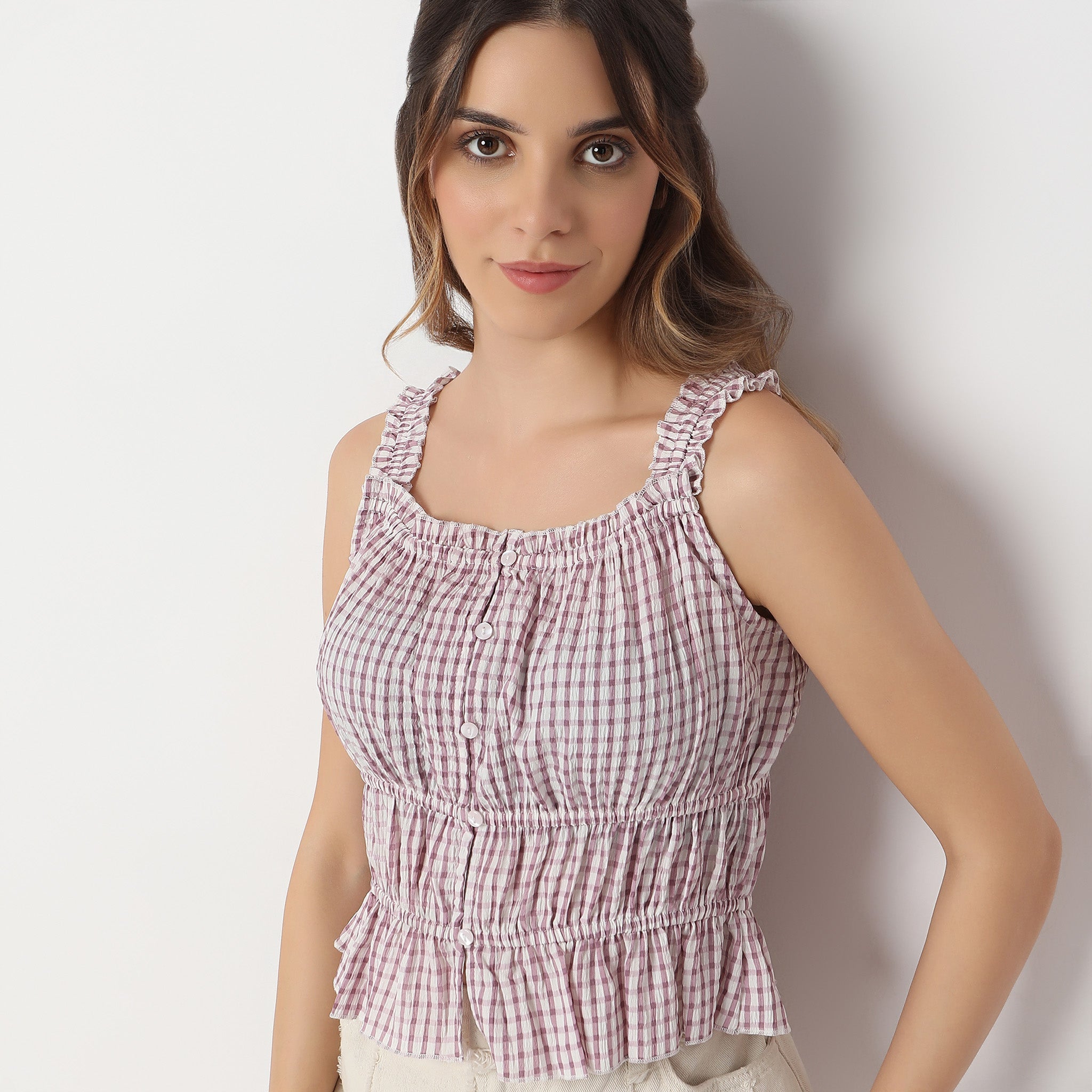 Elevate your wardrobe with the Checkered Square Neck Betty Sleeveless Top, a perfect blend of style and comfort. Crafted from 100% polyester, this top offers a lightweight and breathable feel, making it ideal for warm days. The checkered pattern adds a touch of classic charm, while the square neck design provides a modern twist. Its cropped length pairs beautifully with high-waisted bottoms, making it a versatile addition to your collection.