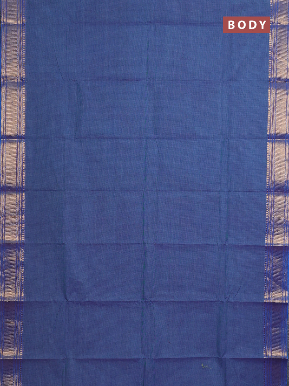 Chettinad cotton saree blue and cs blue with allover small checked pattern and zari woven border