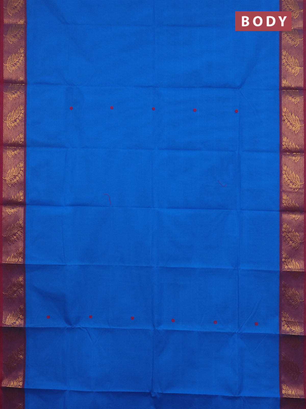 Chettinad cotton saree cs blue and maroon with thread woven buttas and zari woven border
