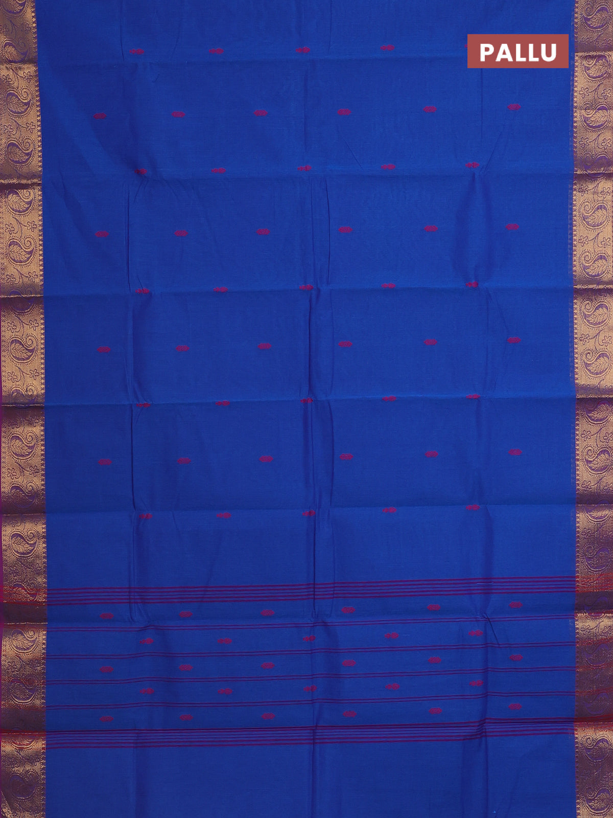 Chettinad cotton saree cs blue and purple with thread woven buttas and zari woven border