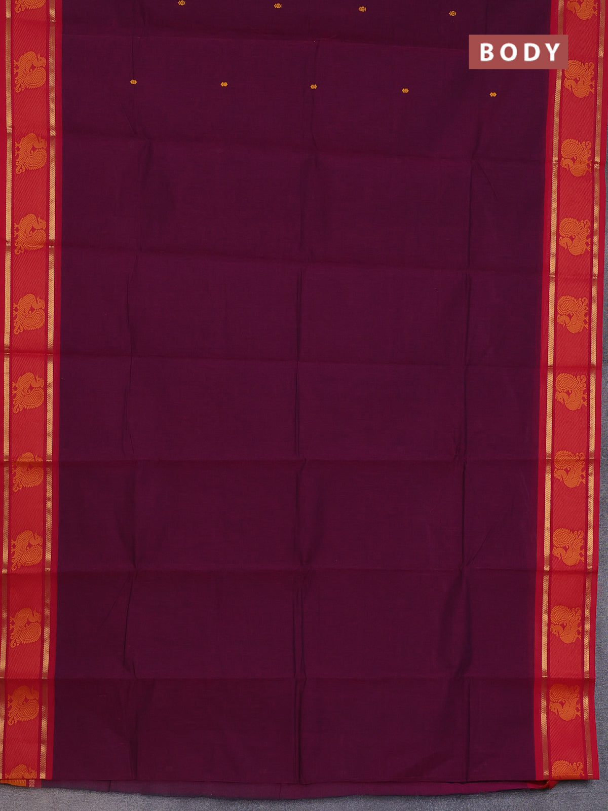 Chettinad cotton saree dark magenta pink and pink with thread woven buttas and zari woven annam butta border