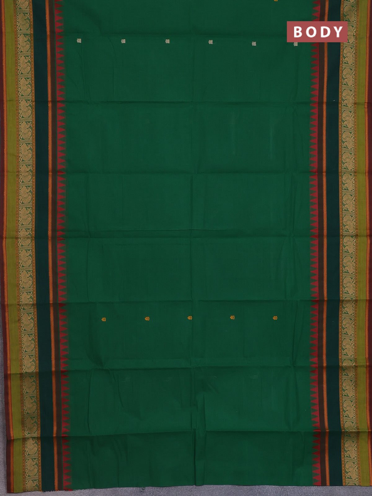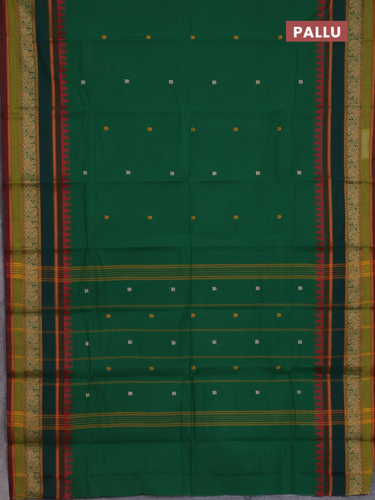 Chettinad cotton saree green and dual shade of maroon with thread woven buttas and long rettapet thread woven border
