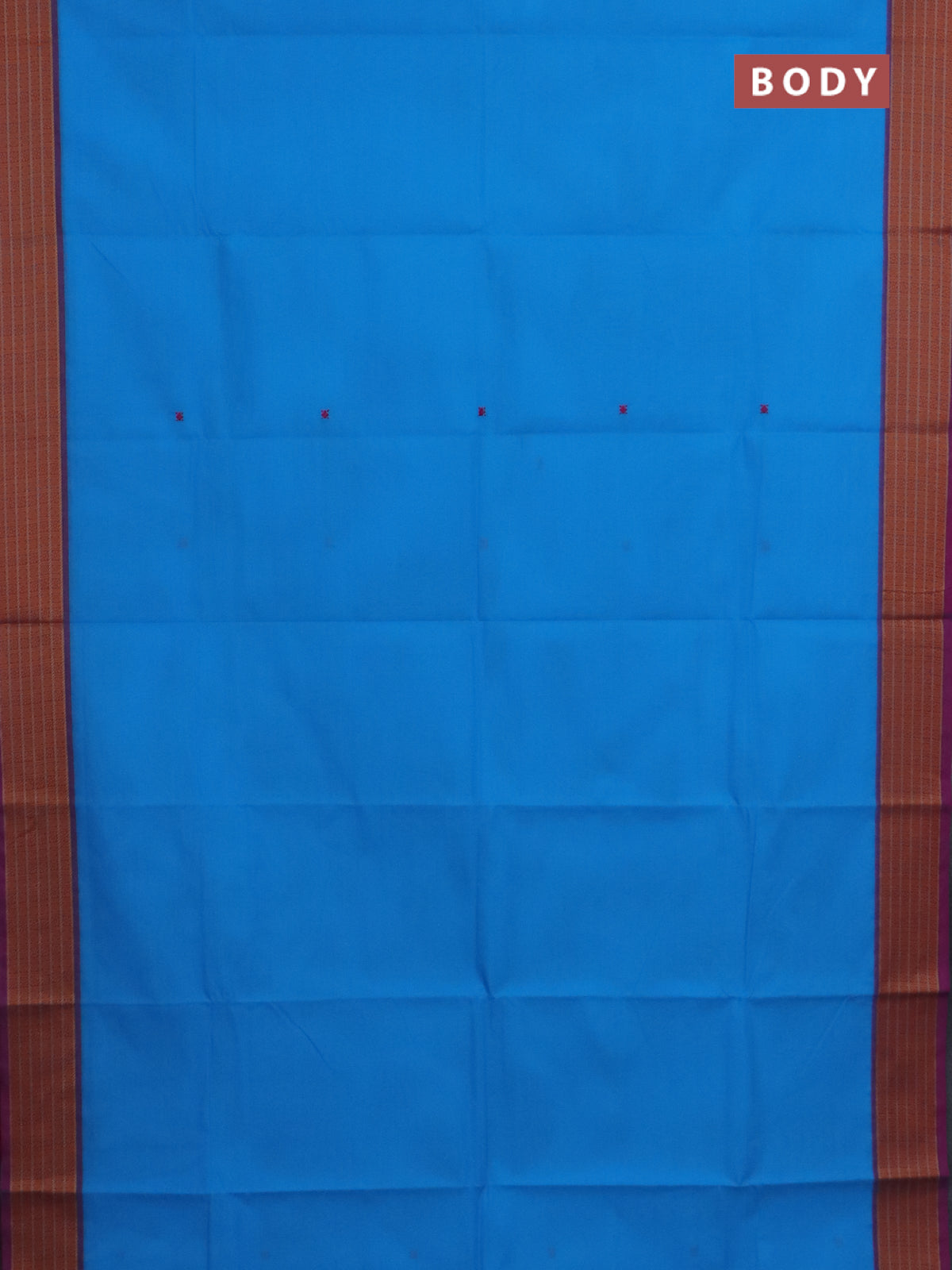 Chettinad cotton saree light blue and magenta pink with thread woven buttas and thread woven border
