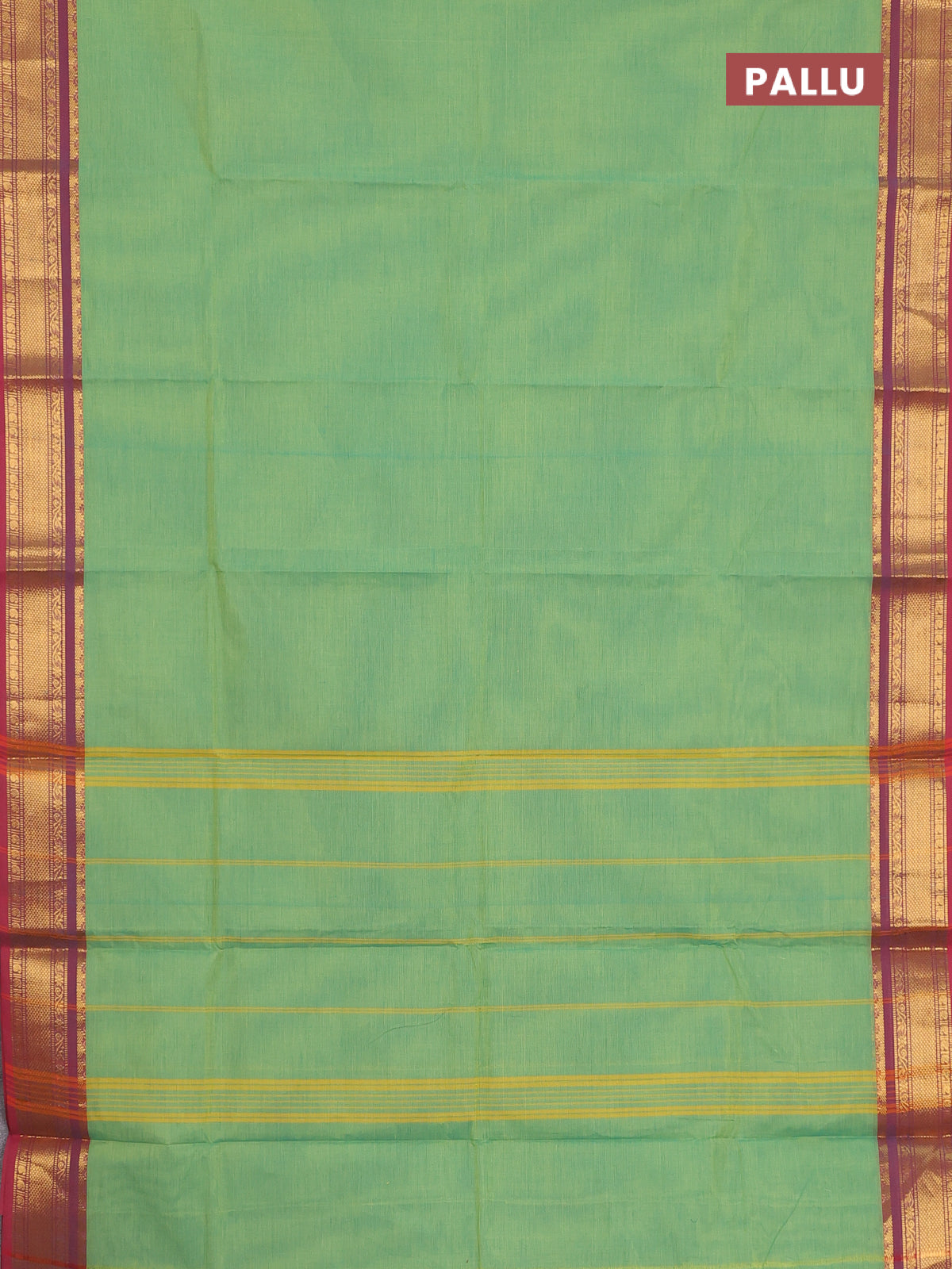 Chettinad cotton saree light green and red with plain body and zari woven border