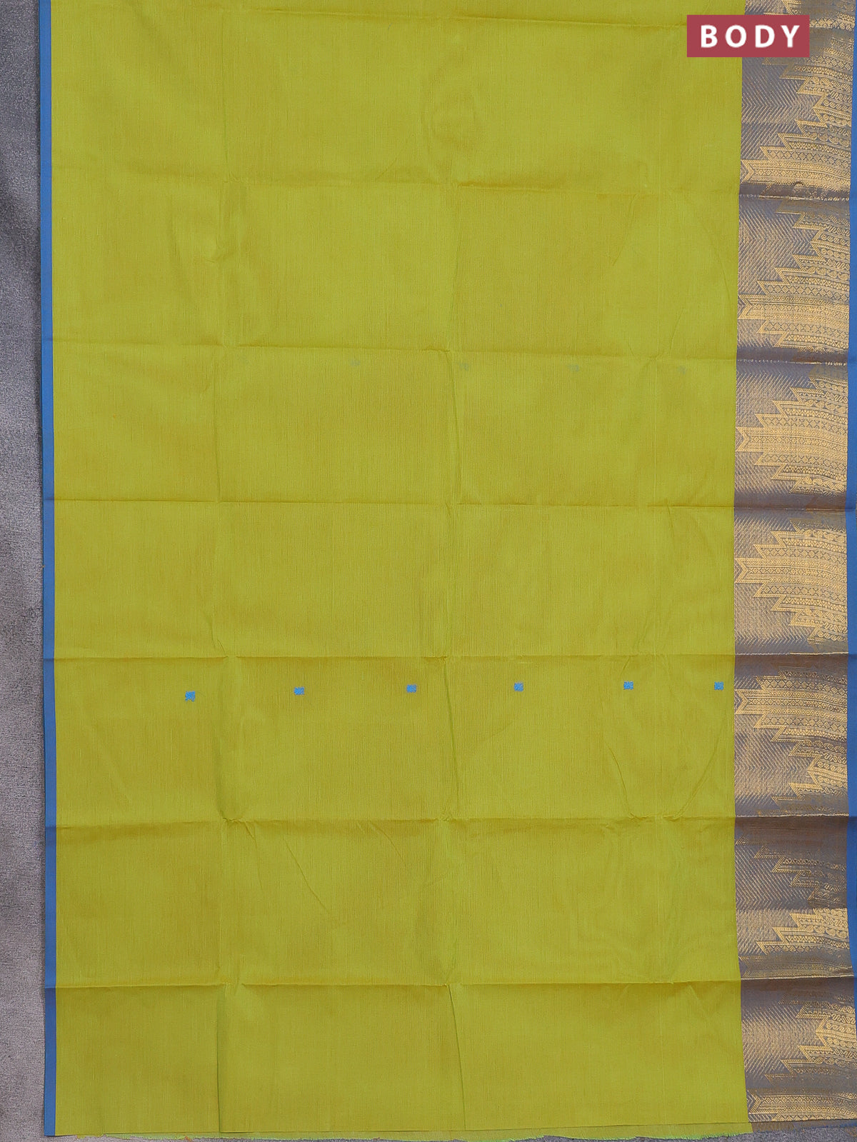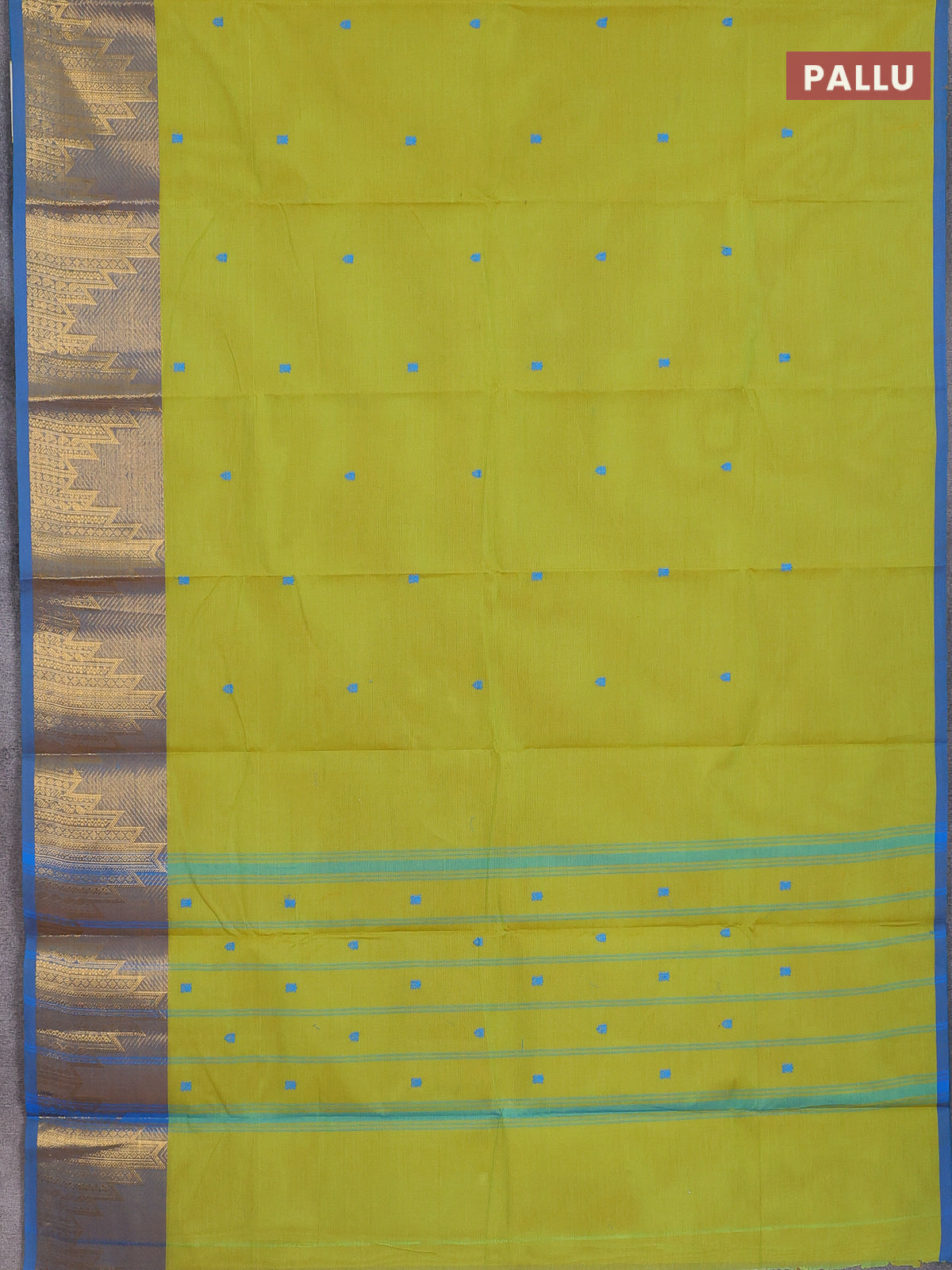 Chettinad cotton saree lime green and cs blue with thread woven buttas and temple design zari border