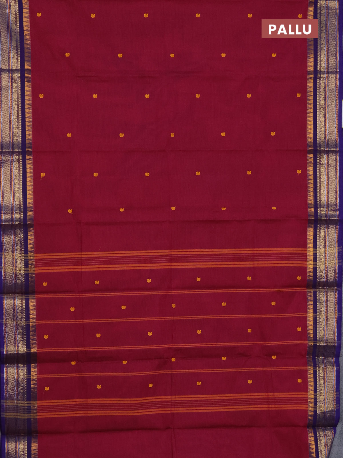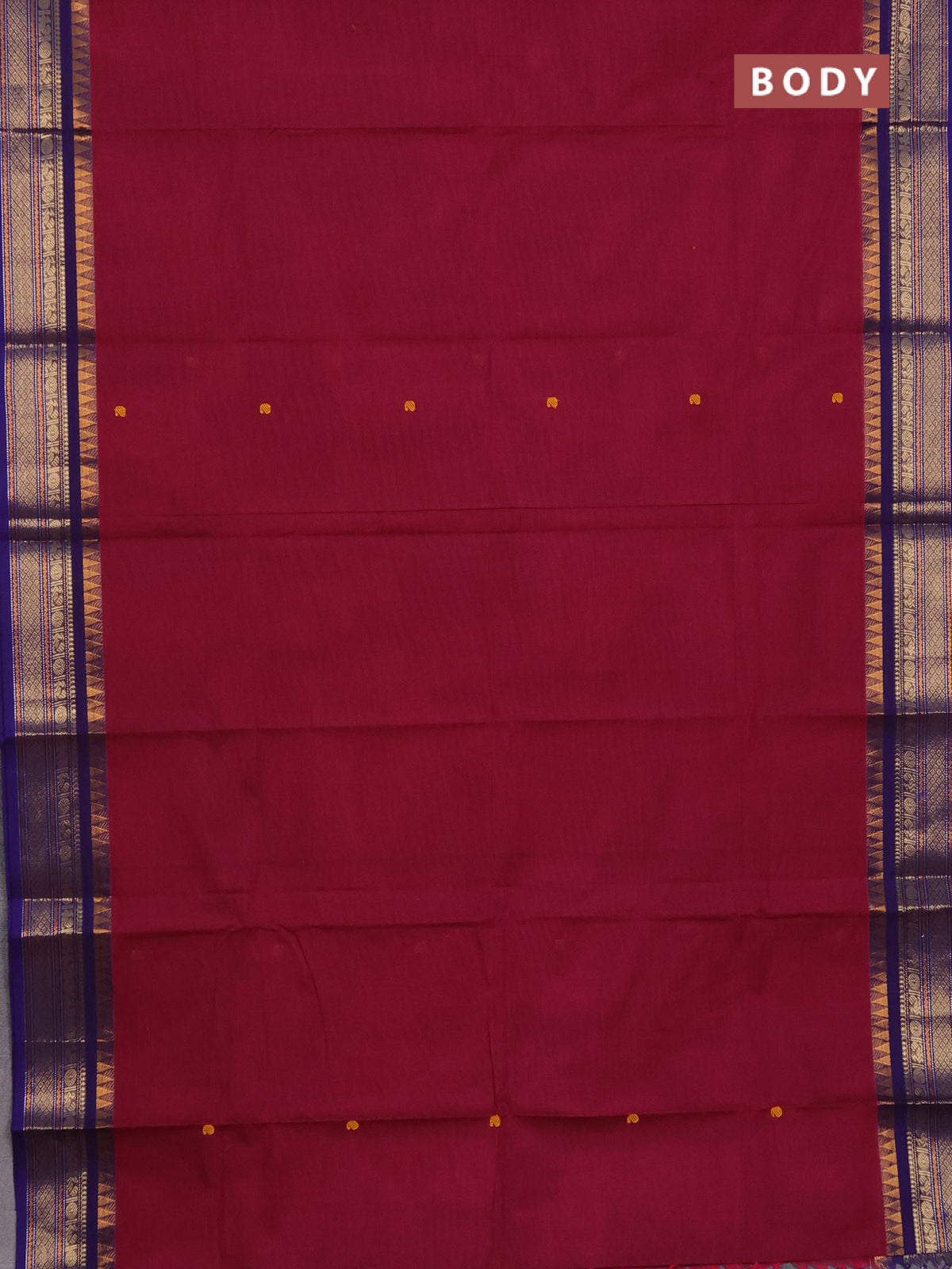Chettinad cotton saree magenta pink and dark violet with thread woven buttas and temple disign zari woven border