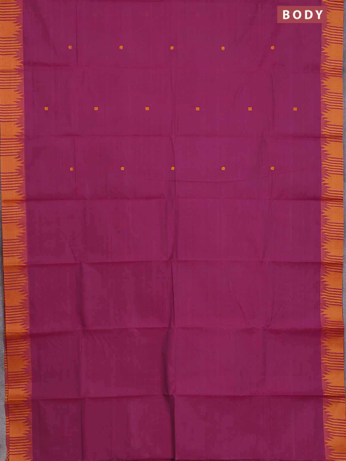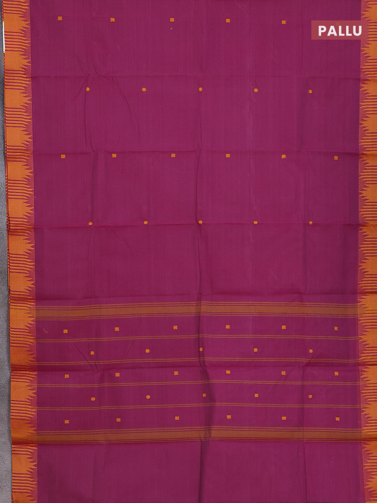 Chettinad cotton saree magenta pink and mustard shade with thread woven buttas and thread woven border