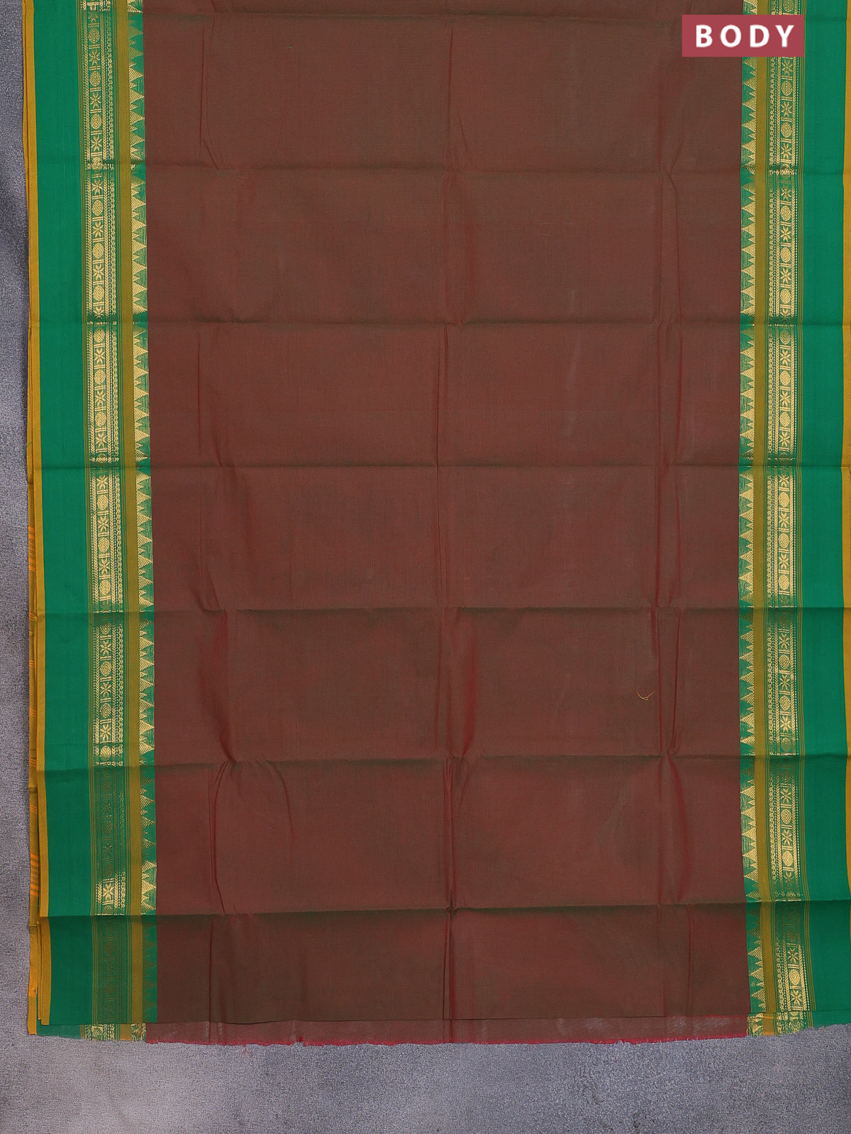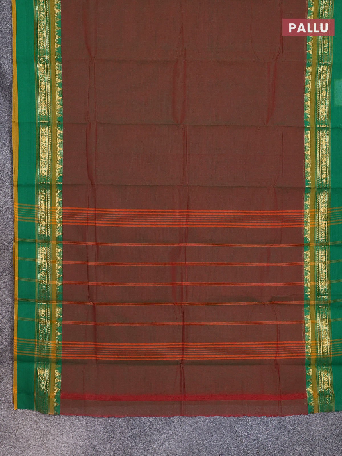 Chettinad cotton saree manthulir green and green with thread woven buttas and temple disign zari woven border