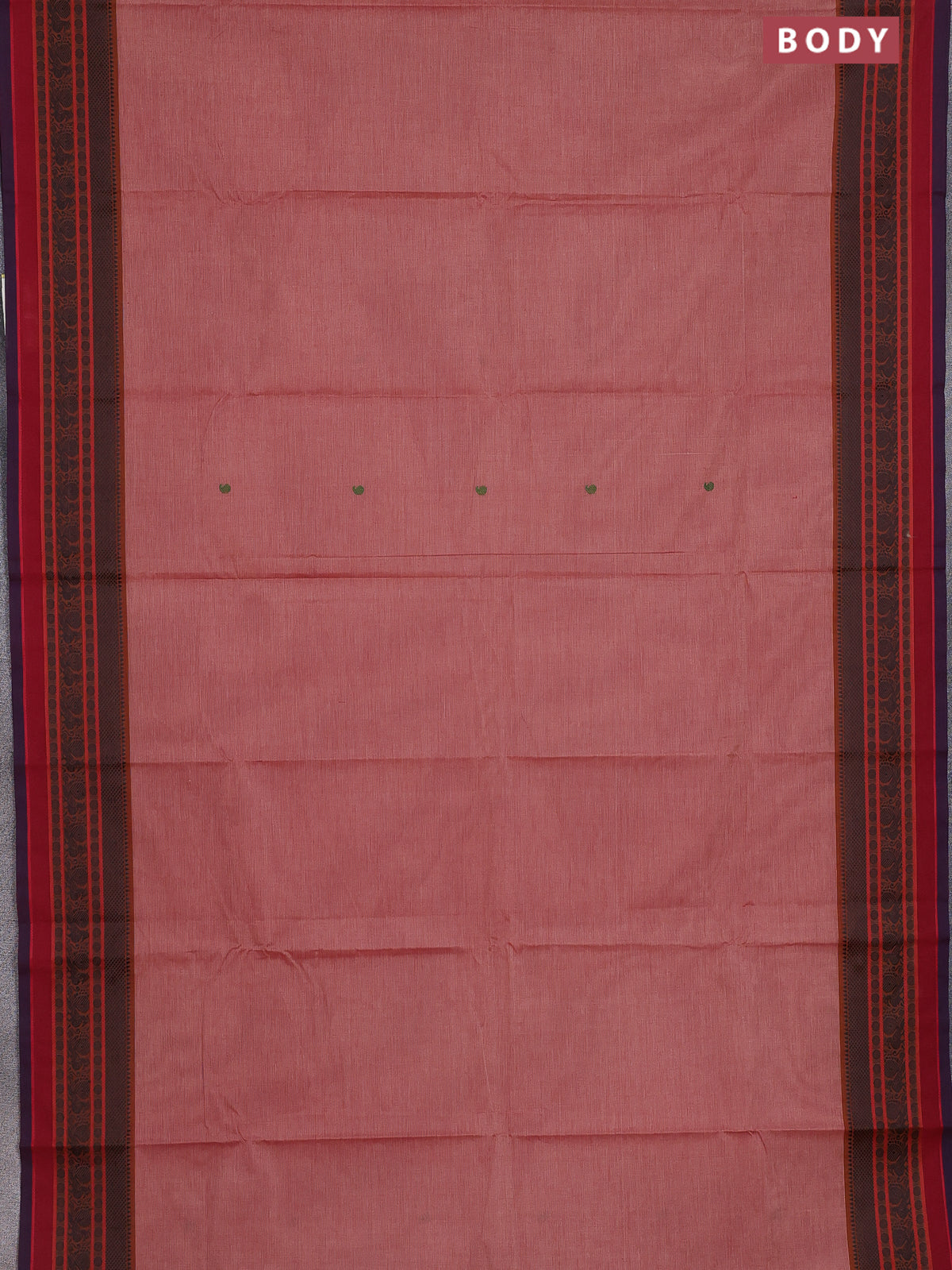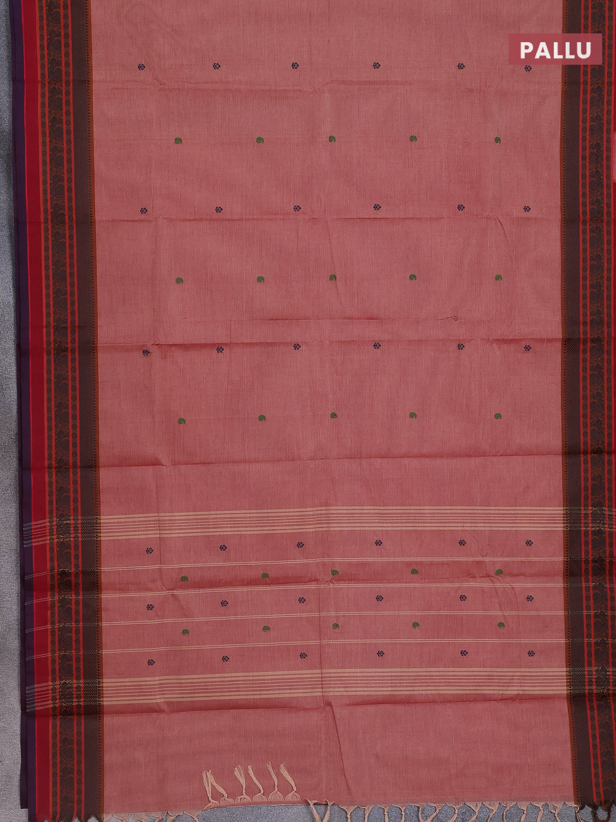 Chettinad cotton saree pastel maroon and brown with thread woven buttas and thread woven border