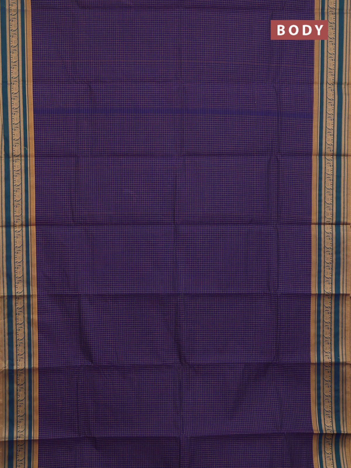 Chettinad cotton saree peacock blue and mustard shade with allover cheked pattern and thread woven border