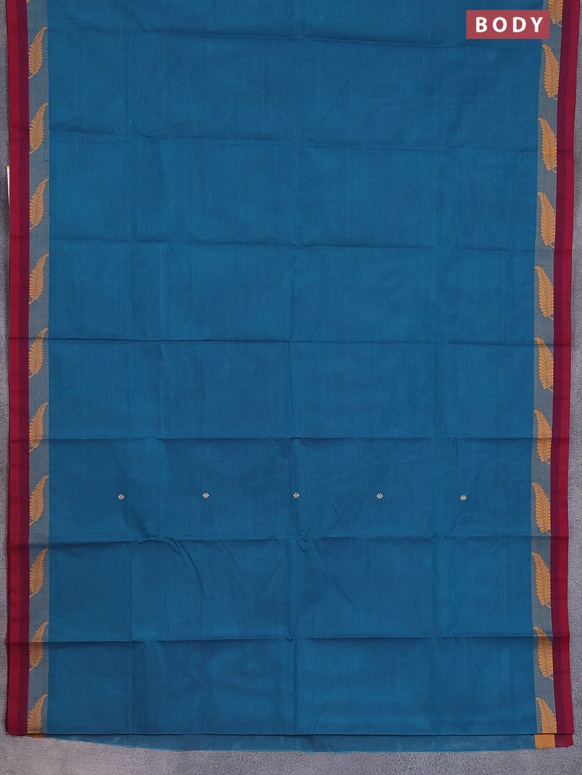 Chettinad cotton saree peacock green and maroon with thread woven buttas and thread woven simple border