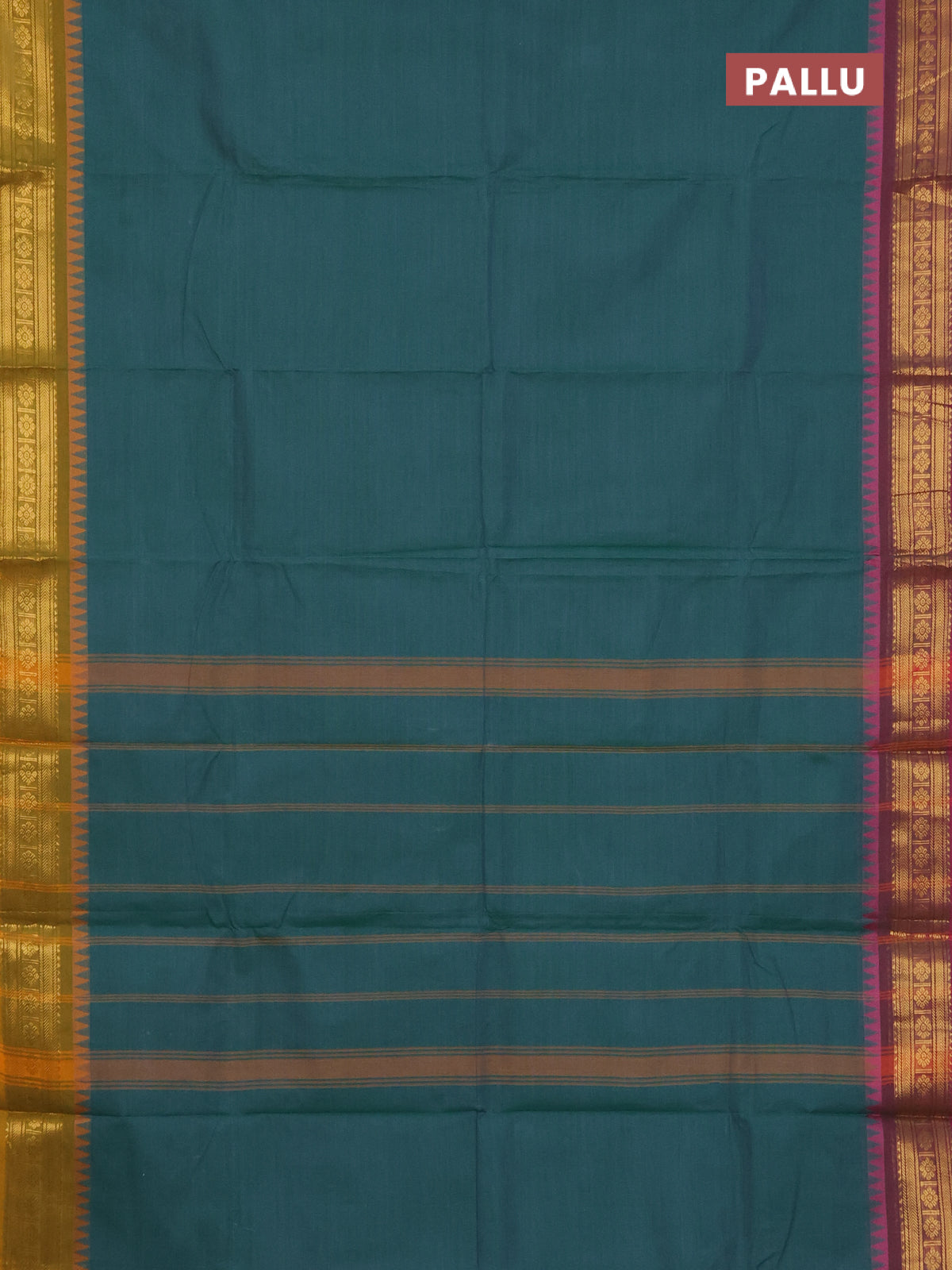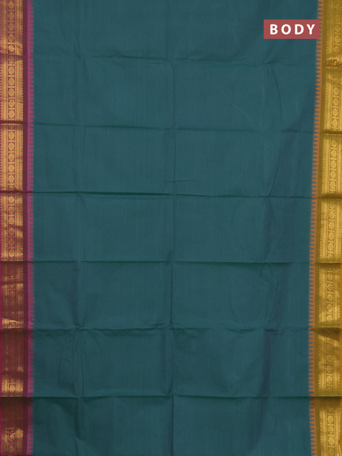 Chettinad cotton saree teal green and mustard yellow with thread woven buttas and ganga jamuna border
