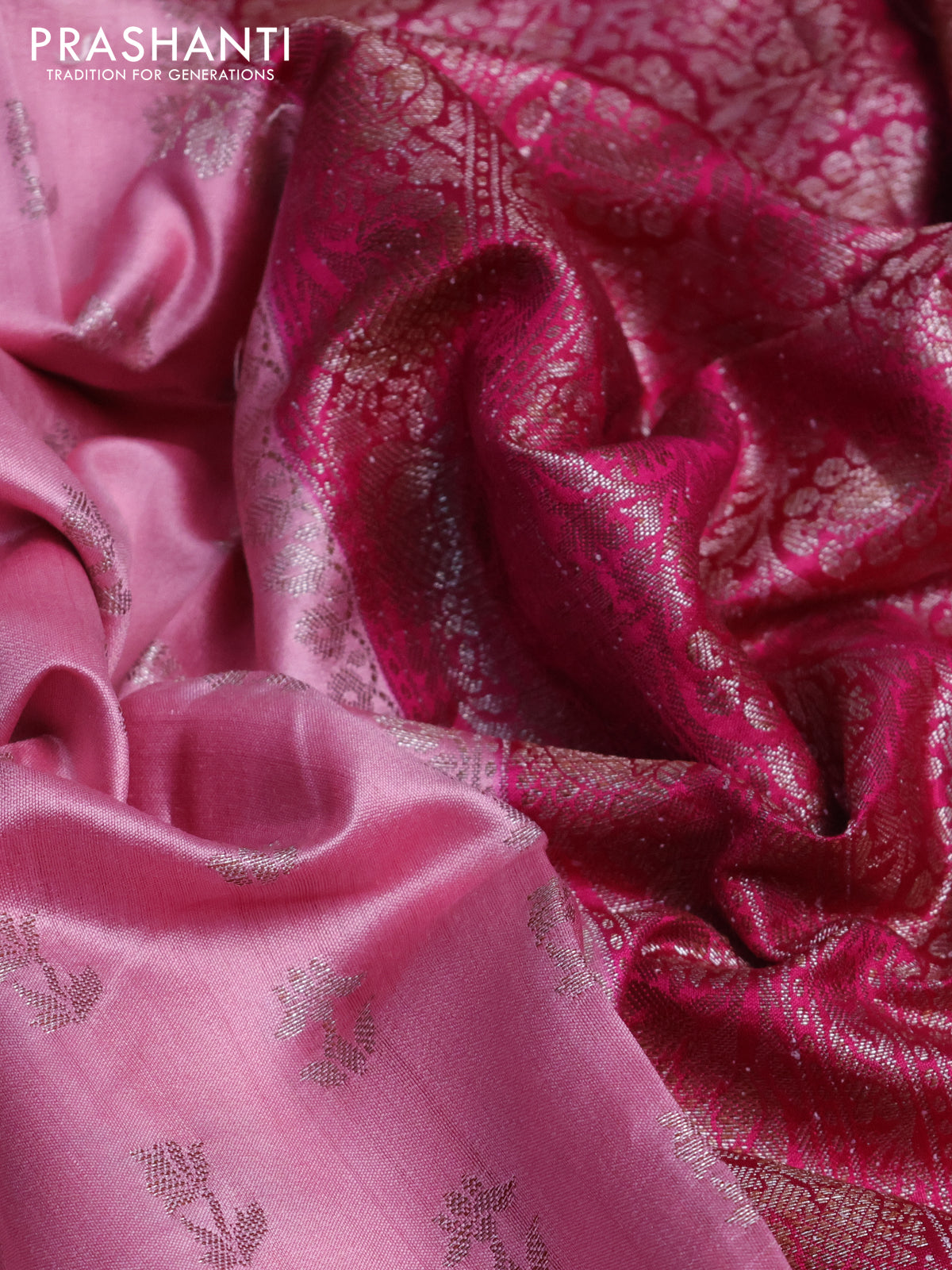 Chiniya silk saree light pink and pink with allover thread & zari woven buttas and woven border