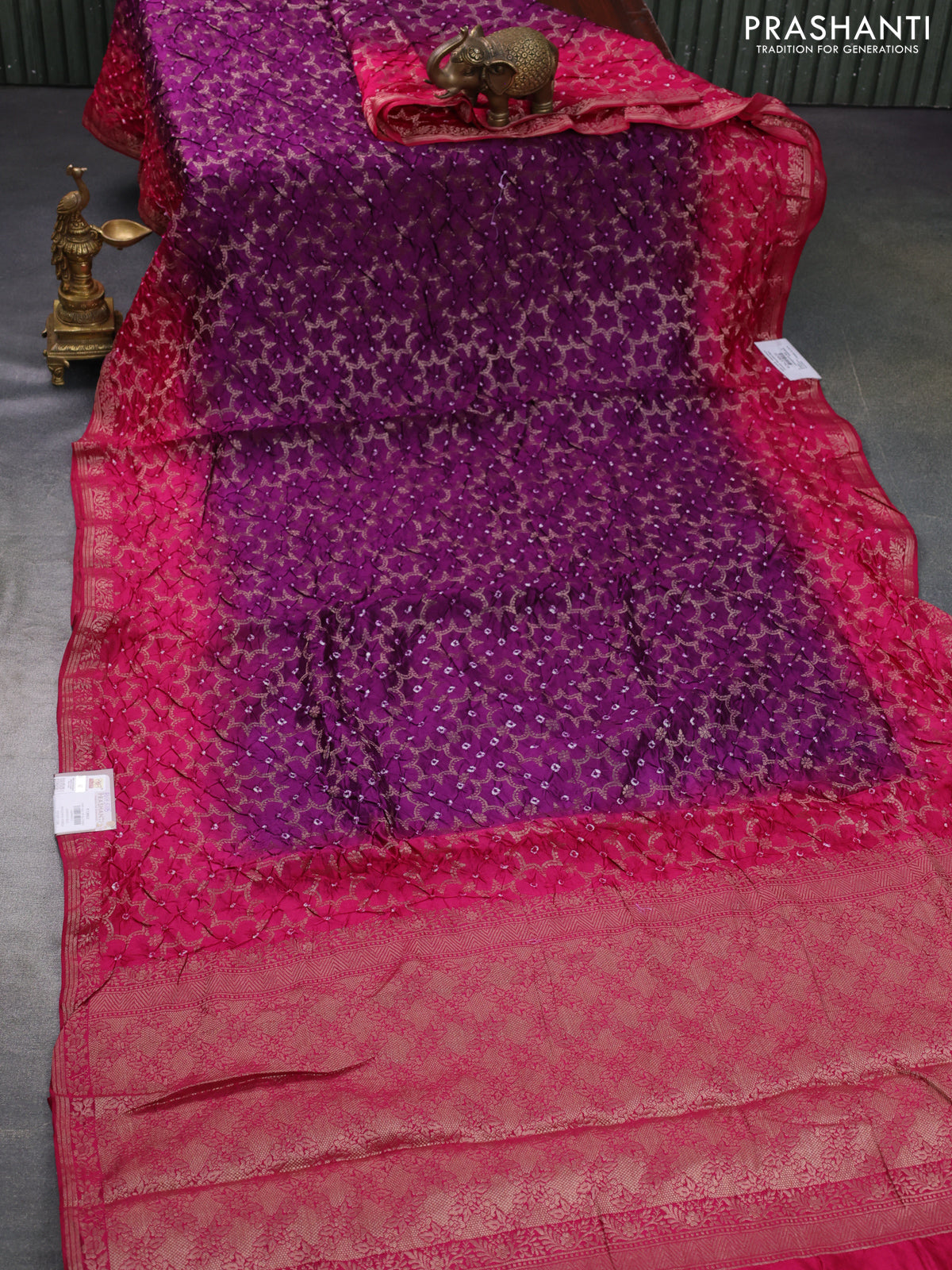 Chiniya silk saree purple and pink with allover bandhani prints & zari weaves and zari woven border