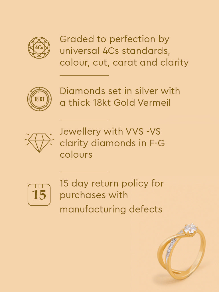 Stand out with this classic comet solitaire lab diamond ring. Made in gold vermeil, it offers a stunning design that is a guaranteed head turner