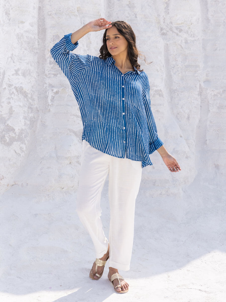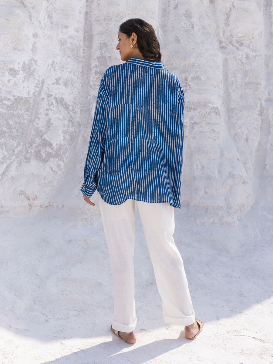 Classic Indigo Stripes Dabu Modal Shirt
