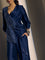 Set the mood for understated evenings with this navy co-ord set that feels easy yet intentional. The jacket features intricate embroidered detailing at the front, adding depth and texture to its wrap-inspired silhouette. Designed for comfort without compromising style, the coordinating pants come with an elasticated waistband and functional side pockets for effortless wear. Worn together, the set offers a relaxed confidence that moves seamlessly from intimate gatherings to after-dark plans.