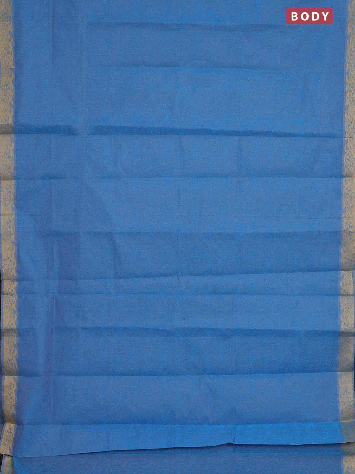 Coimbatore cotton saree blue with allover self emboss and thread woven border