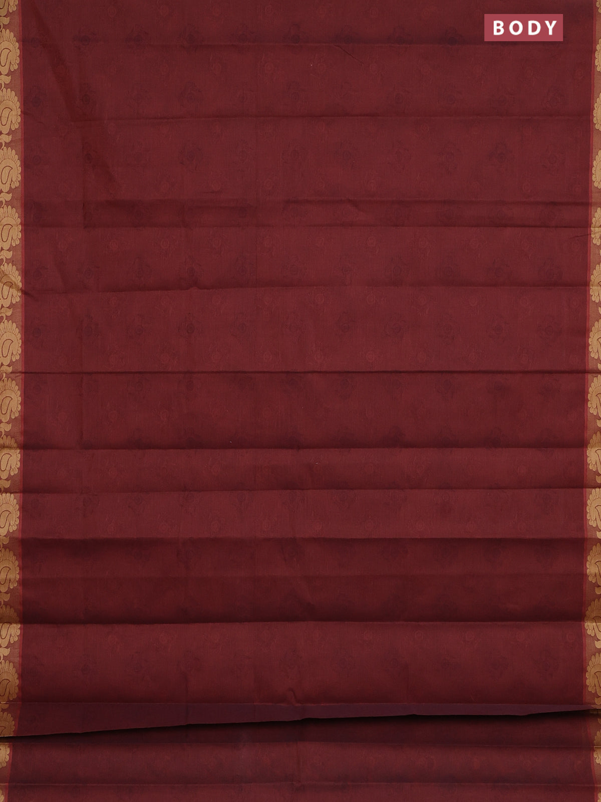 Coimbatore cotton saree brown shade with allover self emboss and thread woven border